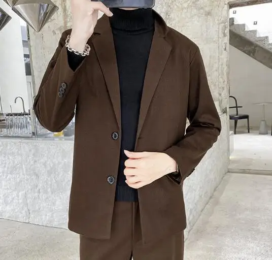 New Style Men's Brown Casual single breasted Casual Long Sleeve Cotton Blend Suit Jacket Coat 78.99