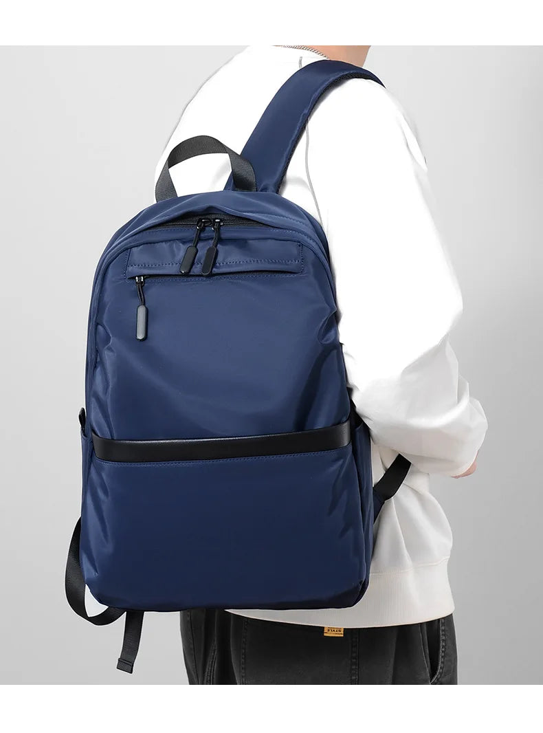 New Style Men's Business Backpack Nylon Solid Color Large Capacity Student Schoolbag Travel Backpack on Sale