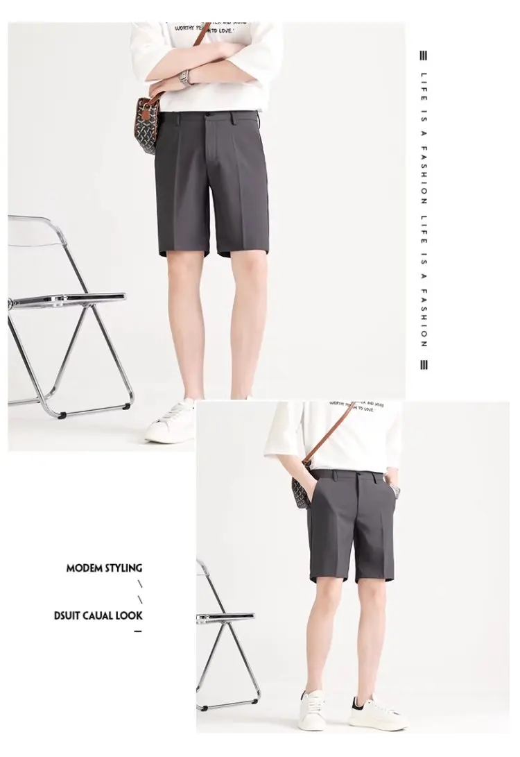 New Summer Men's Casaul Suit Shorts Light Luxury Leisure Non-ironing Straight Korean Style Slim-fit Button-down Pants M-3XL 2025