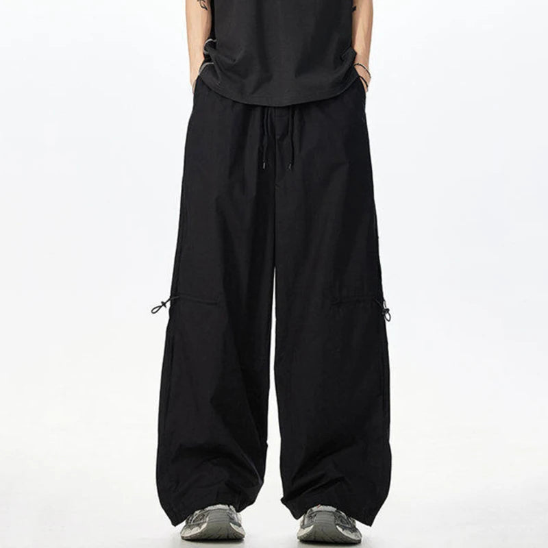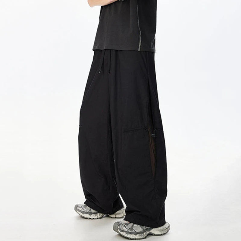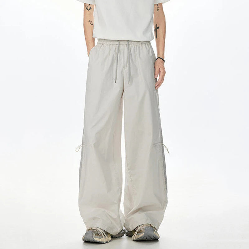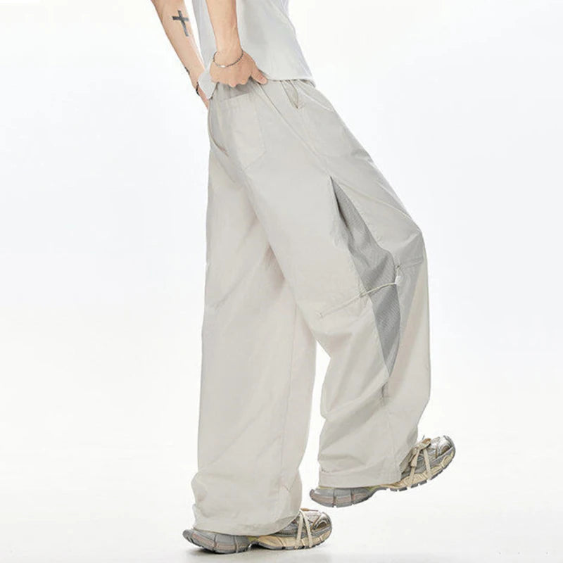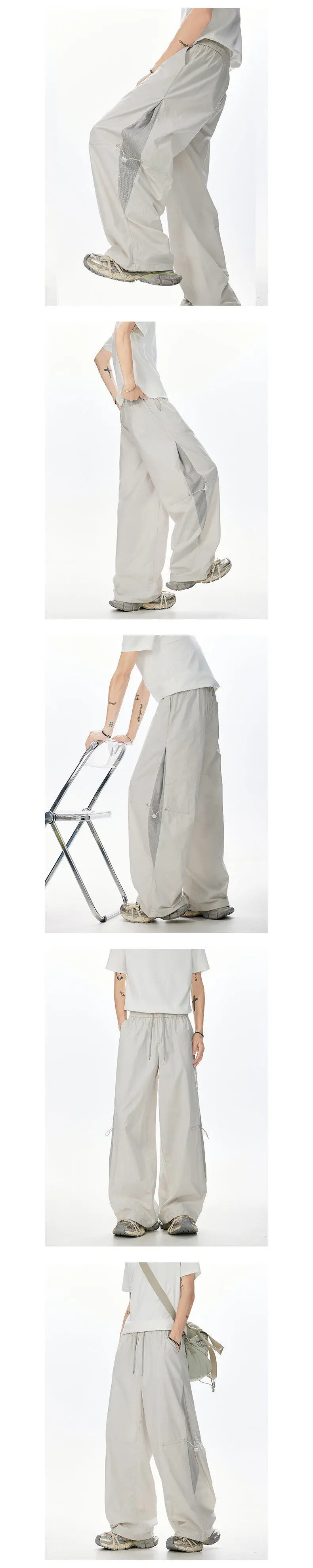 New Summer Men's Casual Pants Solid Color Elastic Waist Contrast Color Ice Silk Mesh Hollow Out Drawstring Bottom