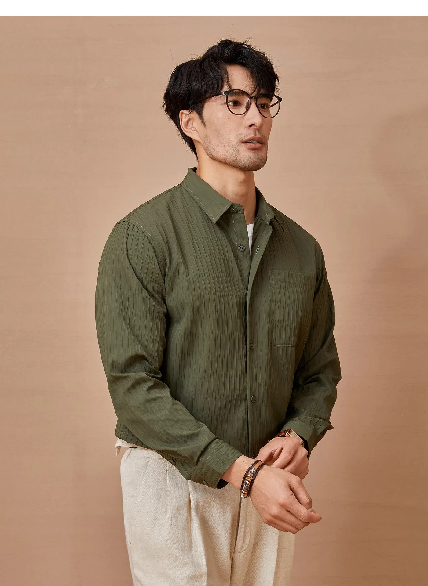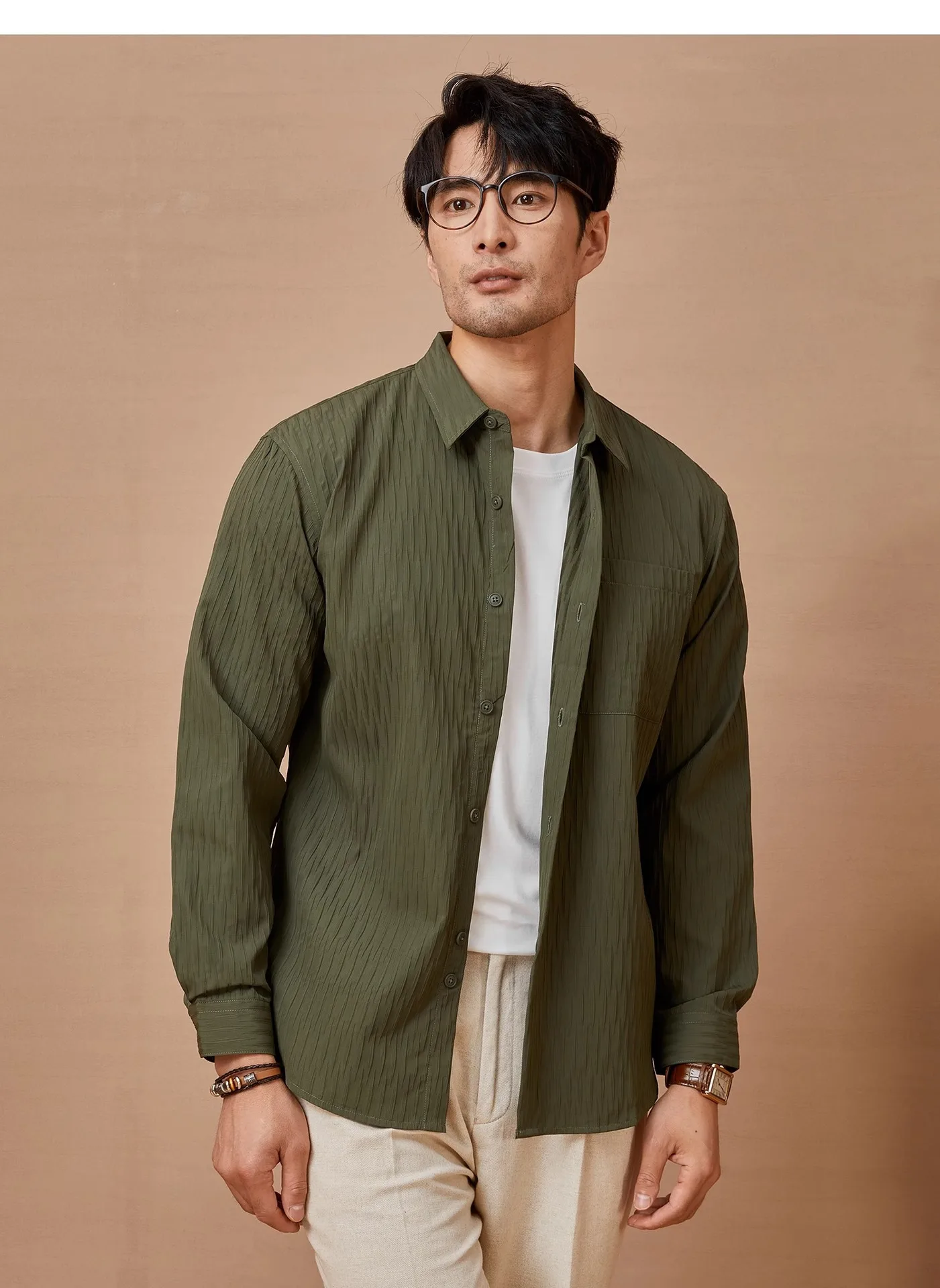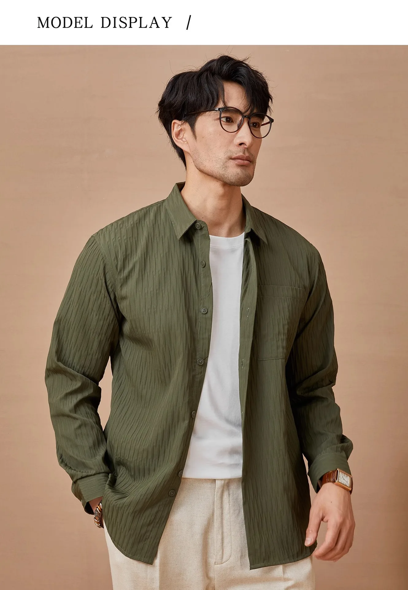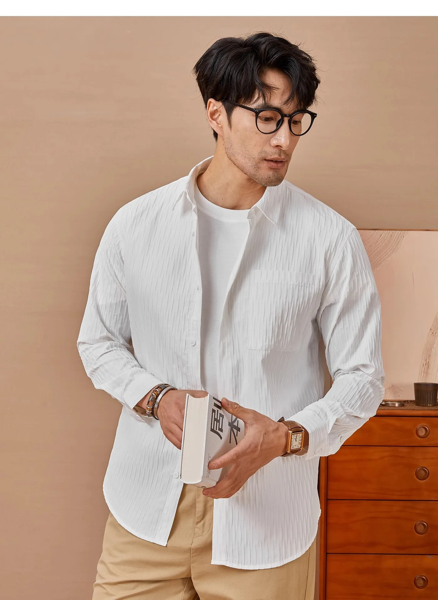New Trend Men Luxury Business Shirts Casual Striped Long Sleeve Cardigan Tops Japanese Style Fashion Leisure Commuter Blouse