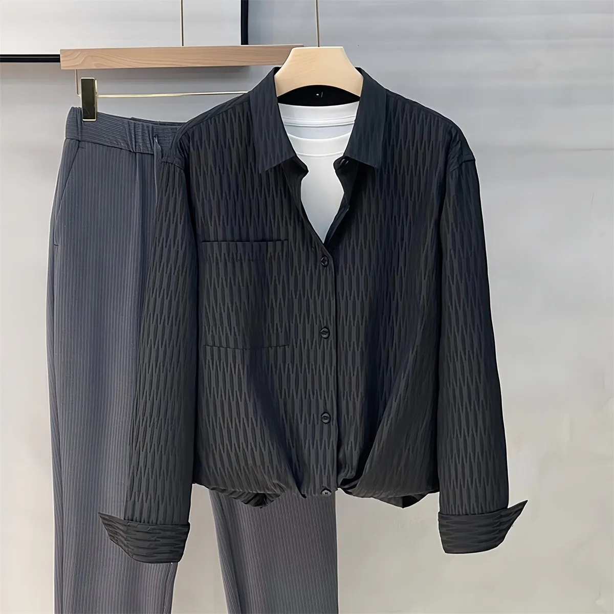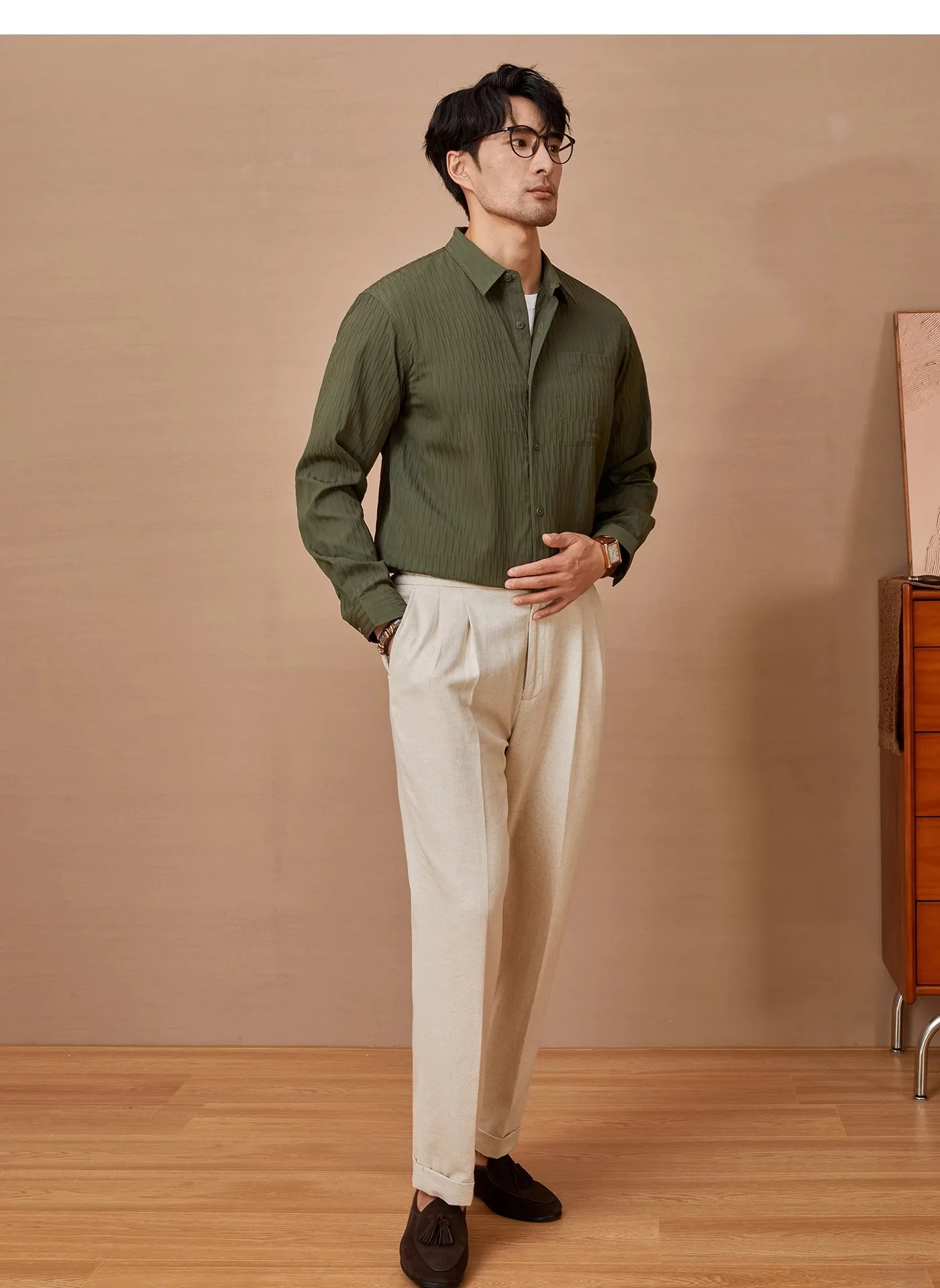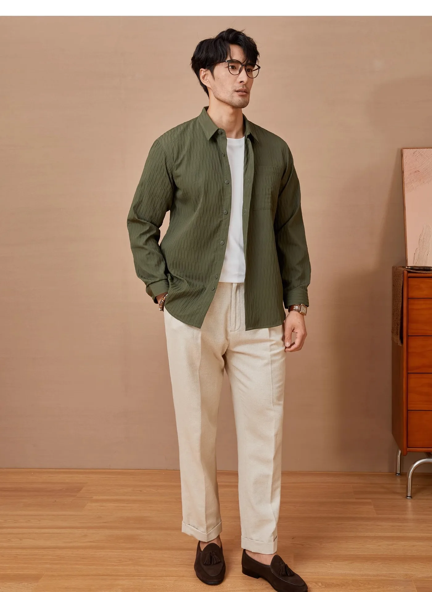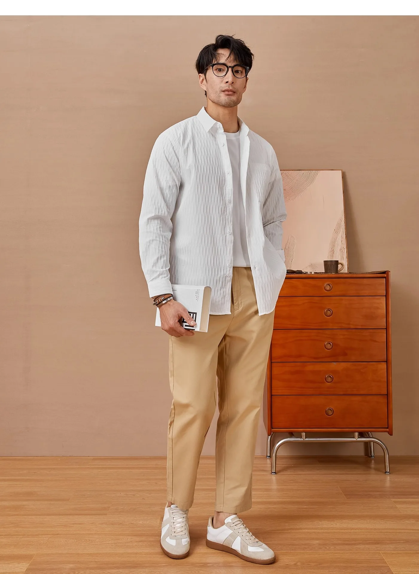 New Trend Men Luxury Business Shirts Casual Striped Long Sleeve Cardigan Tops Japanese Style Fashion Leisure Commuter Blouse