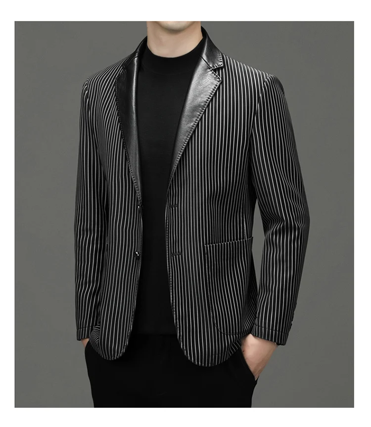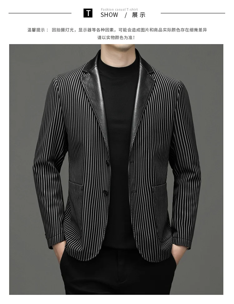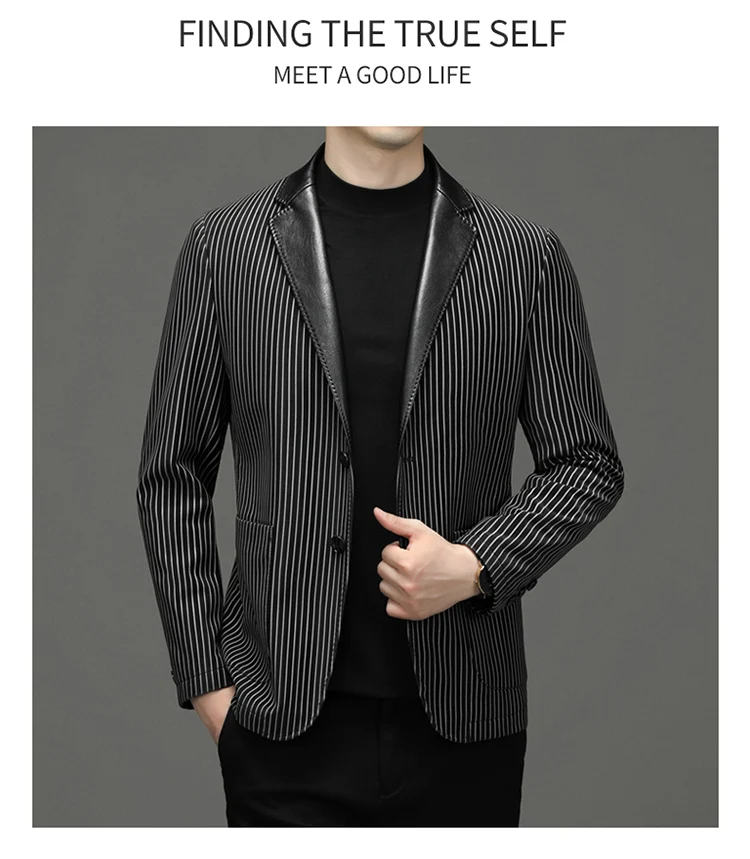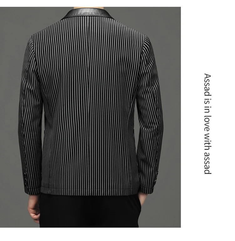 New Upscale Leather Men's Matching Striped British Fashion Gentleman's Suit Jacket Leather Jacket Casual Slim Wedding Blazer