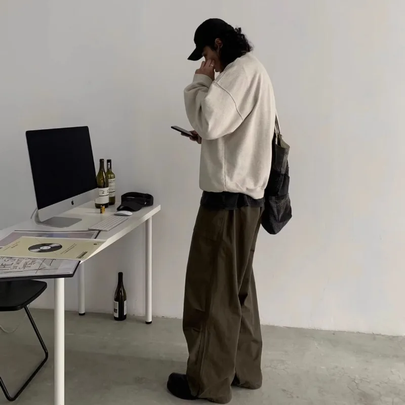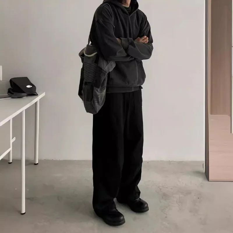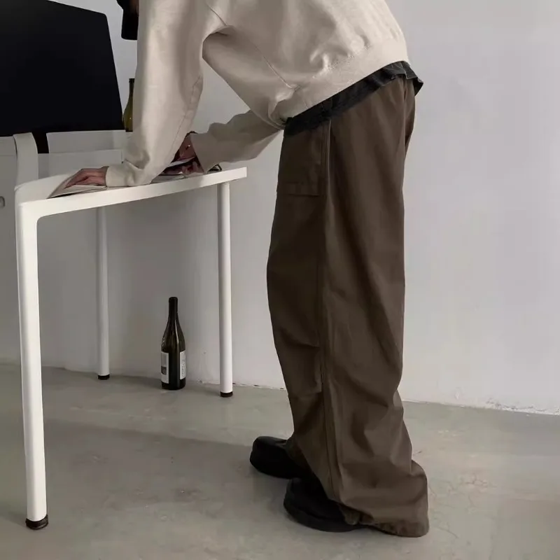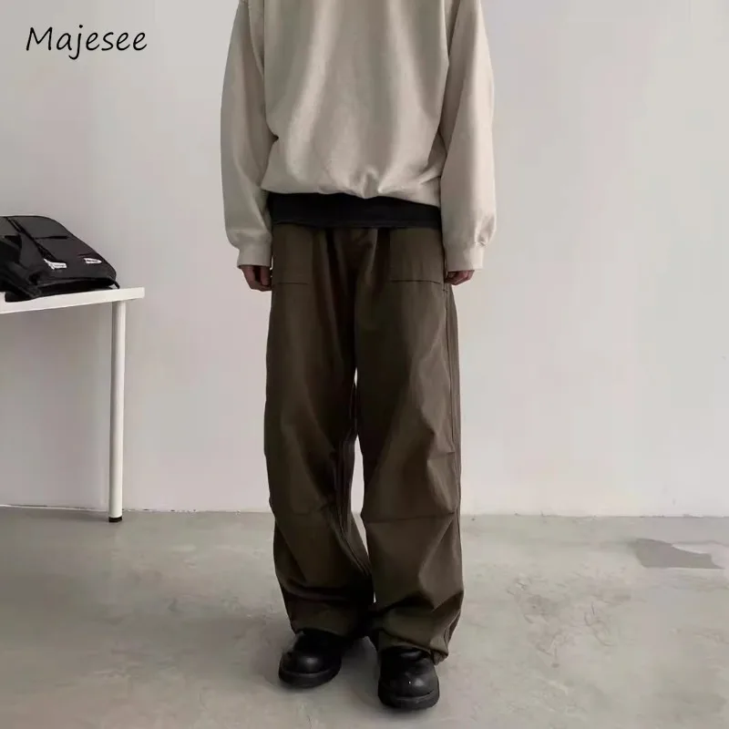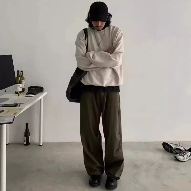 Pants Men Cozy Loose Fashion Straight Trousers Japanese Style Drawstring Simple Retro Mature Charming All-match Streetwear New