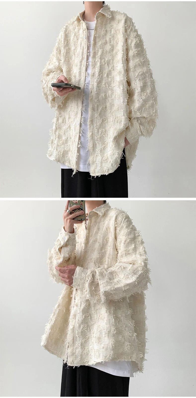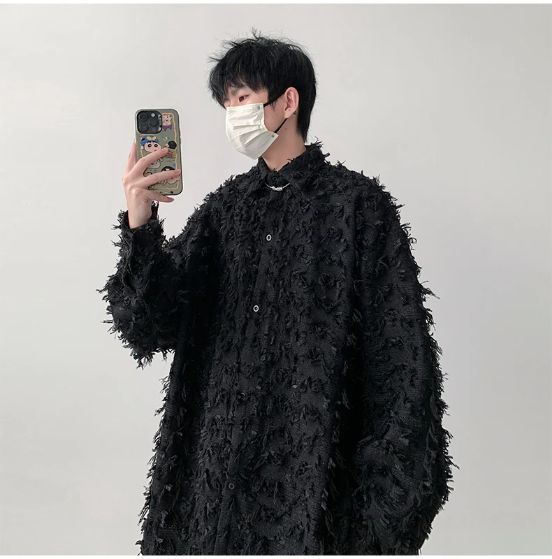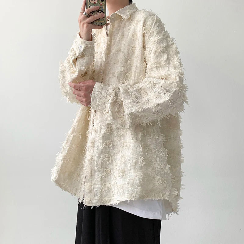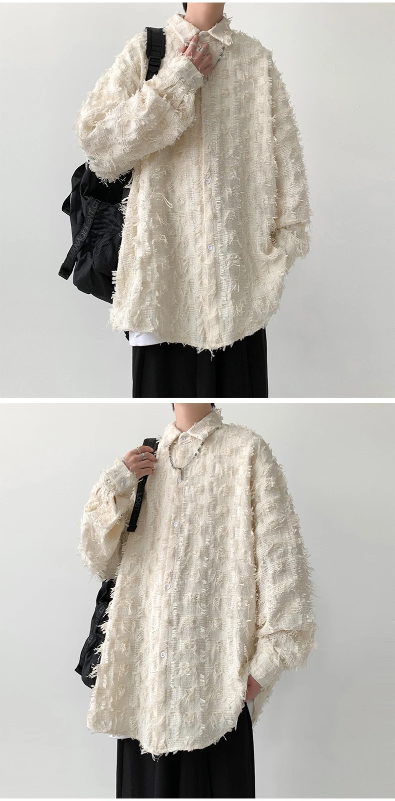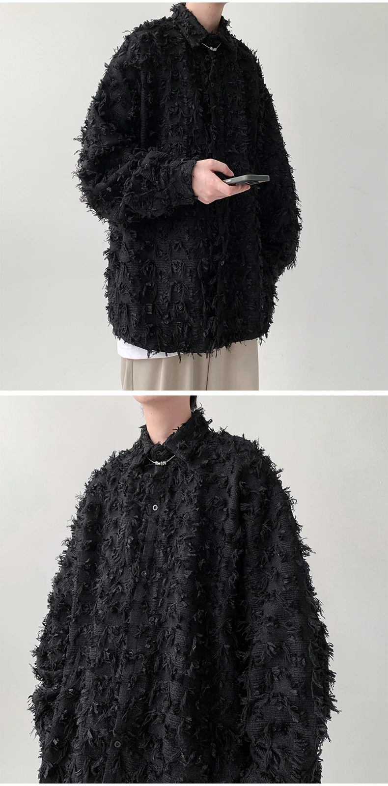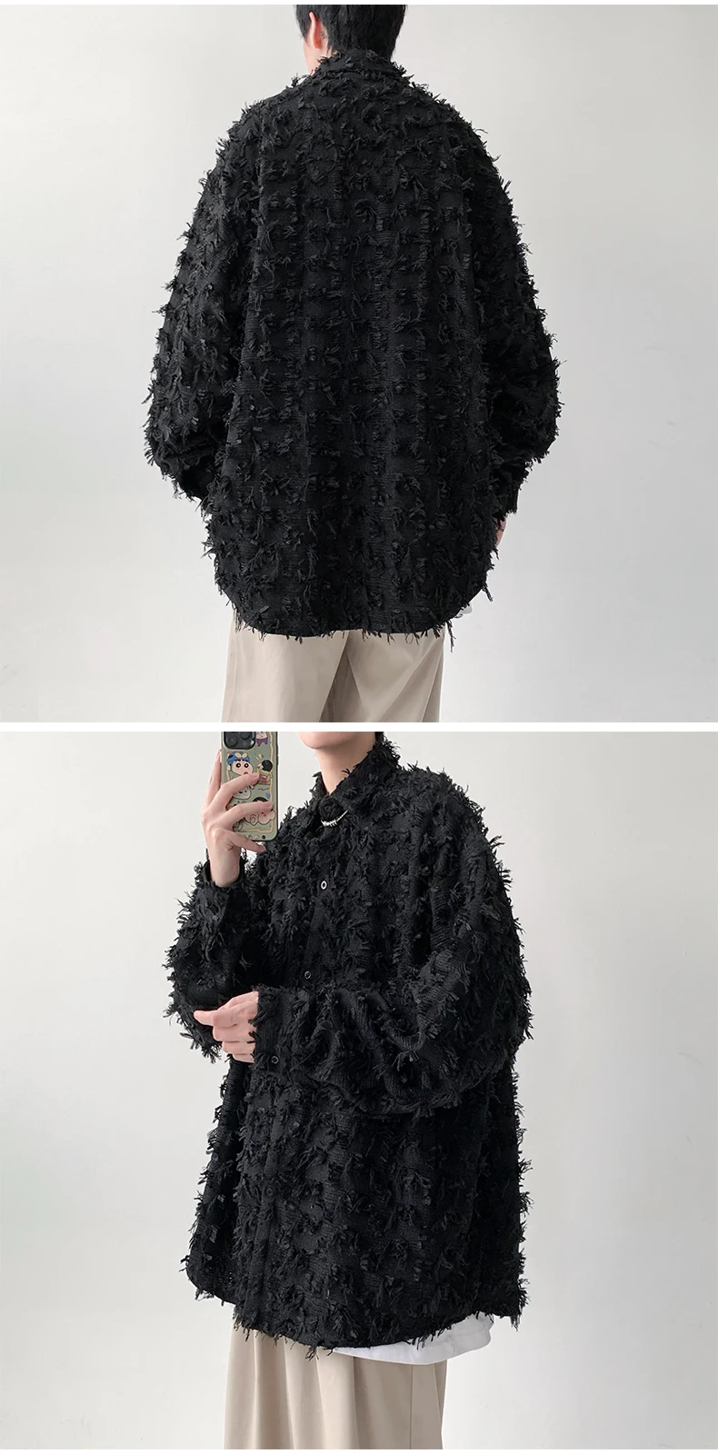 Personality Thick Tassel Shirt High Quality Fashion Streetwear Long Sleeve Shirts Men's Casual Loose Tops Autumn New Blouse Men