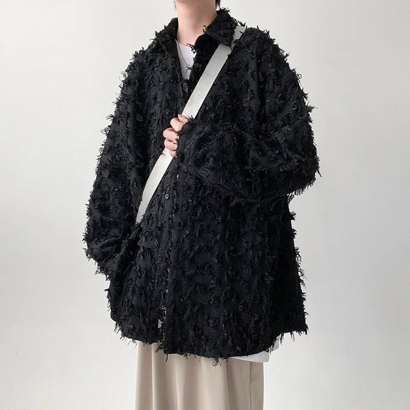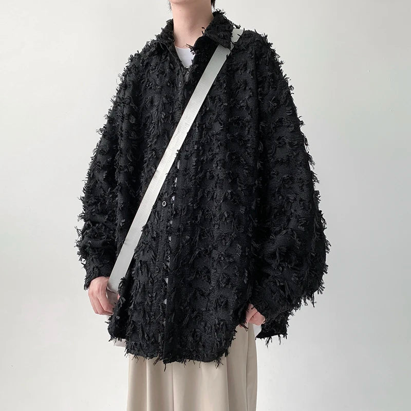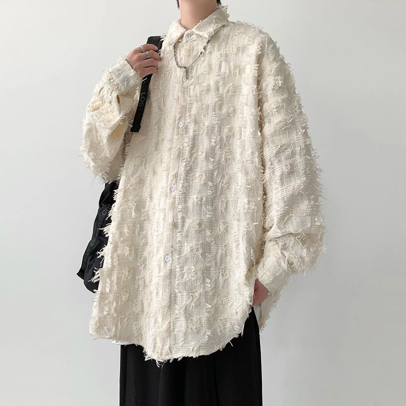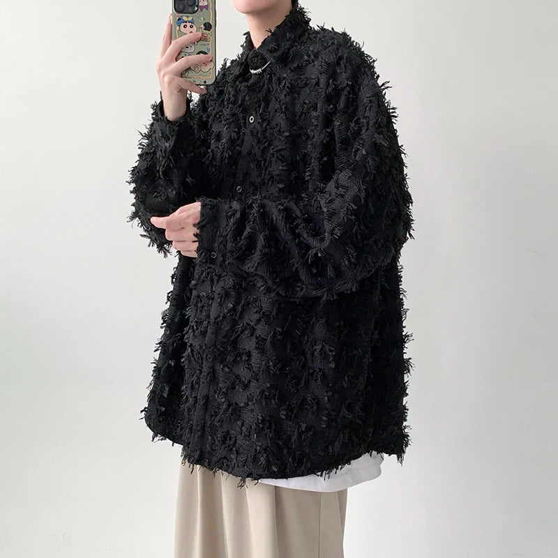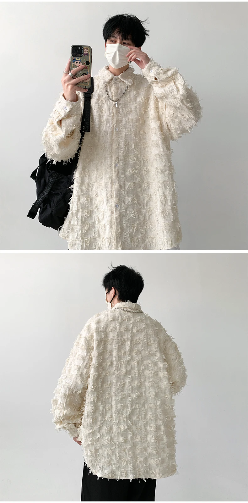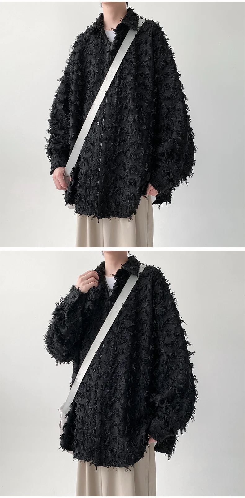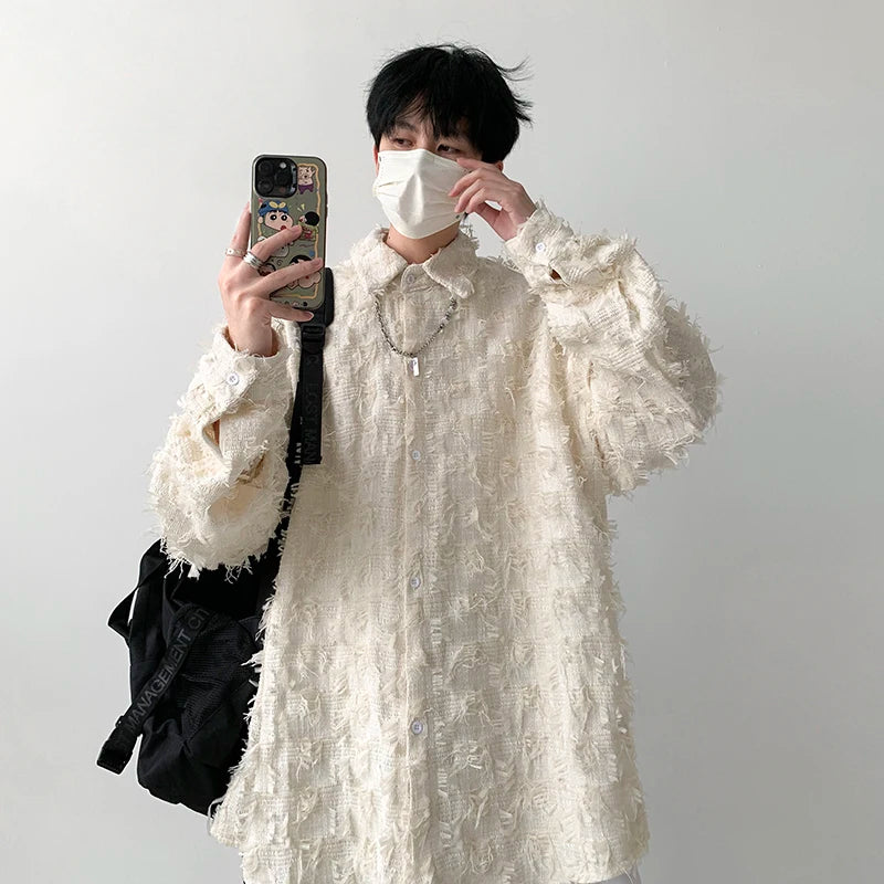 Personality Thick Tassel Shirt High Quality Fashion Streetwear Long Sleeve Shirts Men's Casual Loose Tops Autumn New Blouse Men