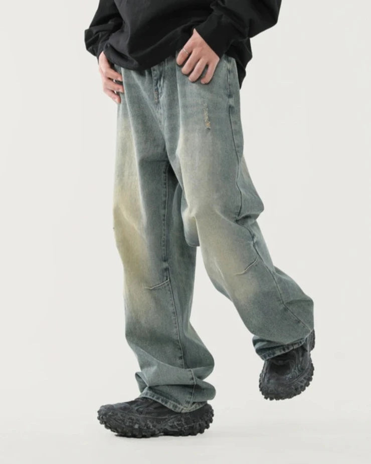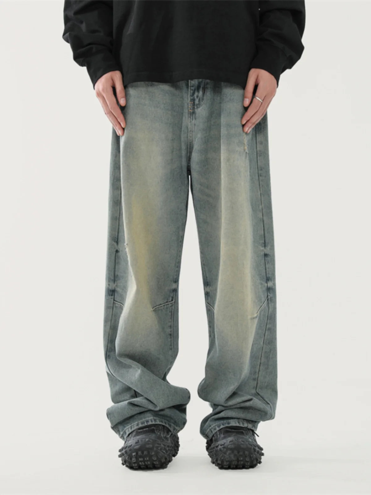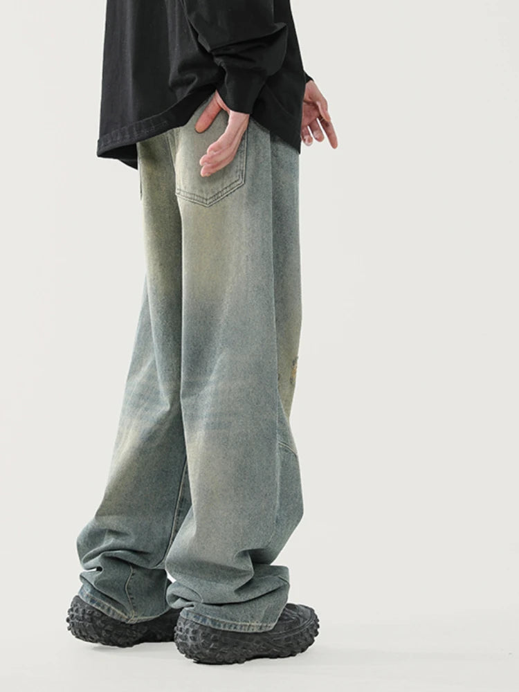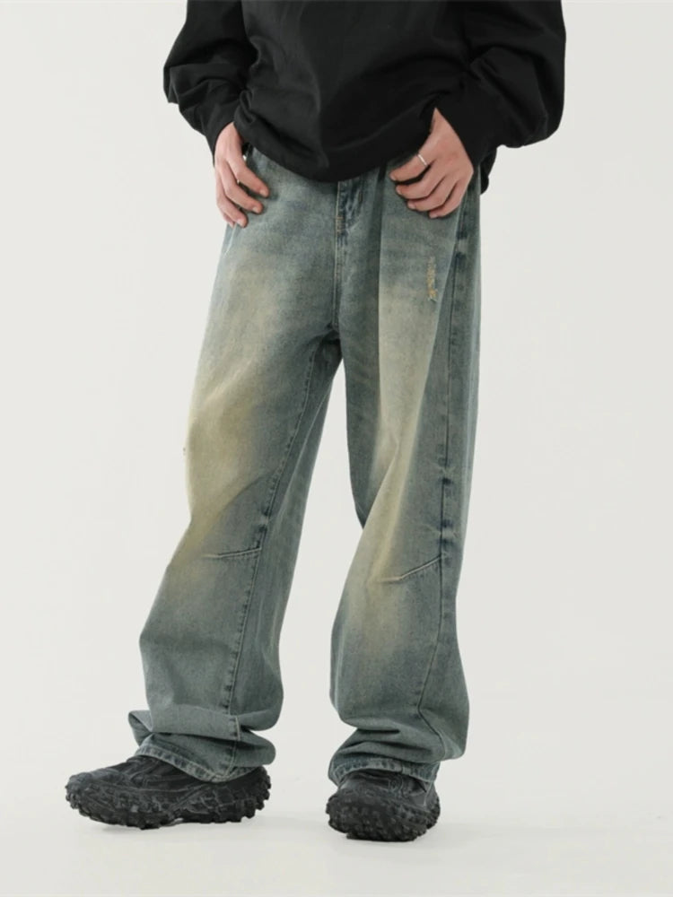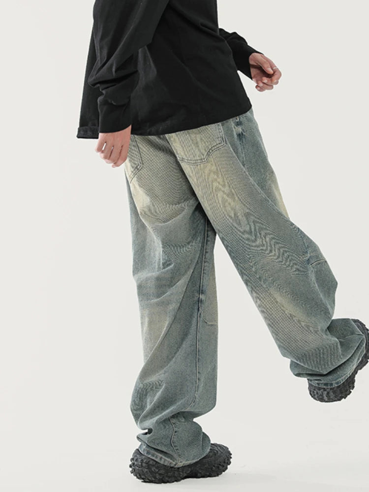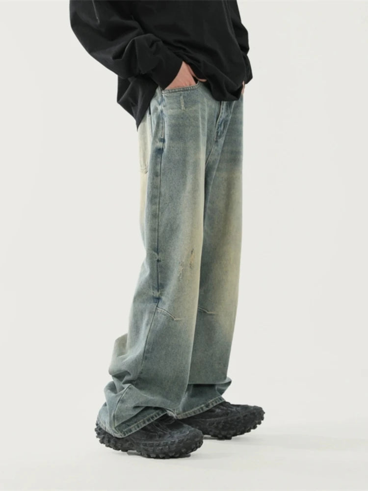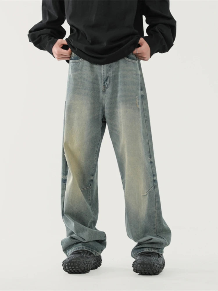 Retro Jeans Men Autumn American Punk Style High Street Baggy Hip Hop Full Length All-match Washed Nostalgic Denim Trousers New