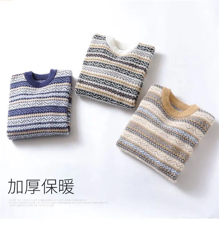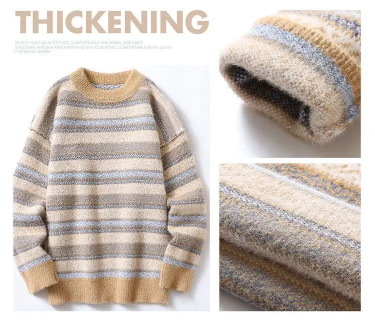 Round neck sweater for men and women autumn and winter new trend loose and high-end sense knitted sweater couple striped casual