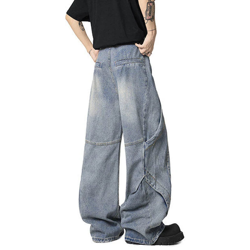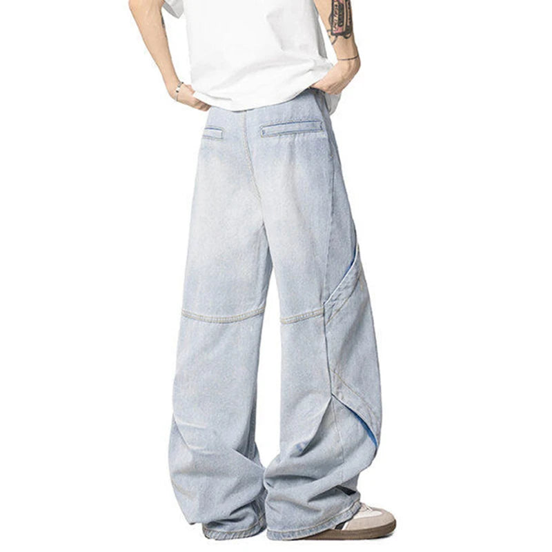 Solid Color Male Denim Pants Men Clothing Summer New Fashion 2025 Baggy Patchwork Male Jeans Straight Bottoms