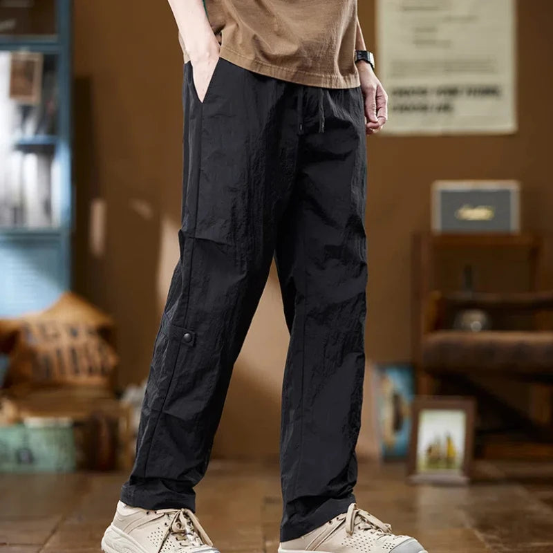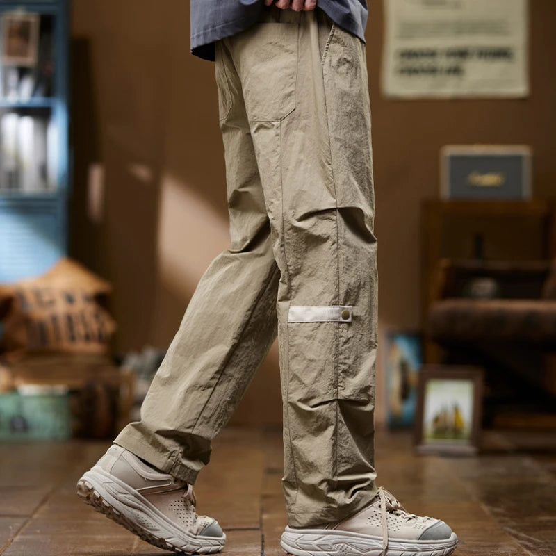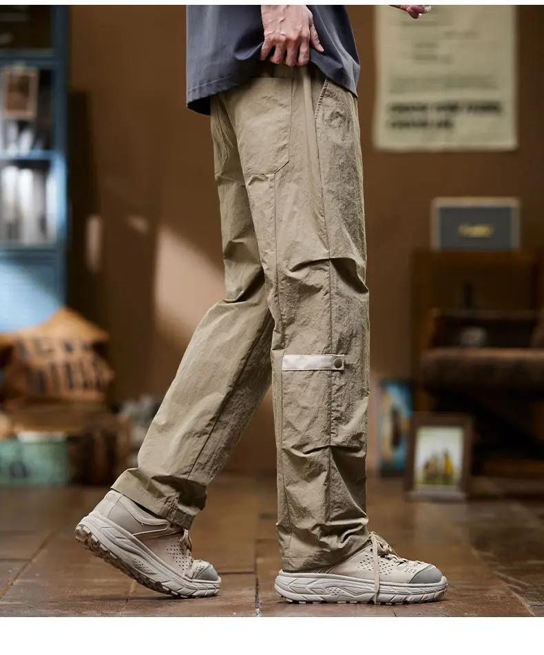 Spring Autumn New Fashion Elastic Waist Solid Men's Clothing Pockets American Style Drawstring Simplicity Casual Straight Pants
