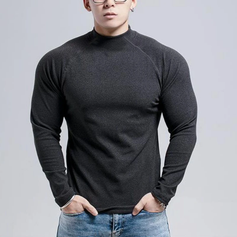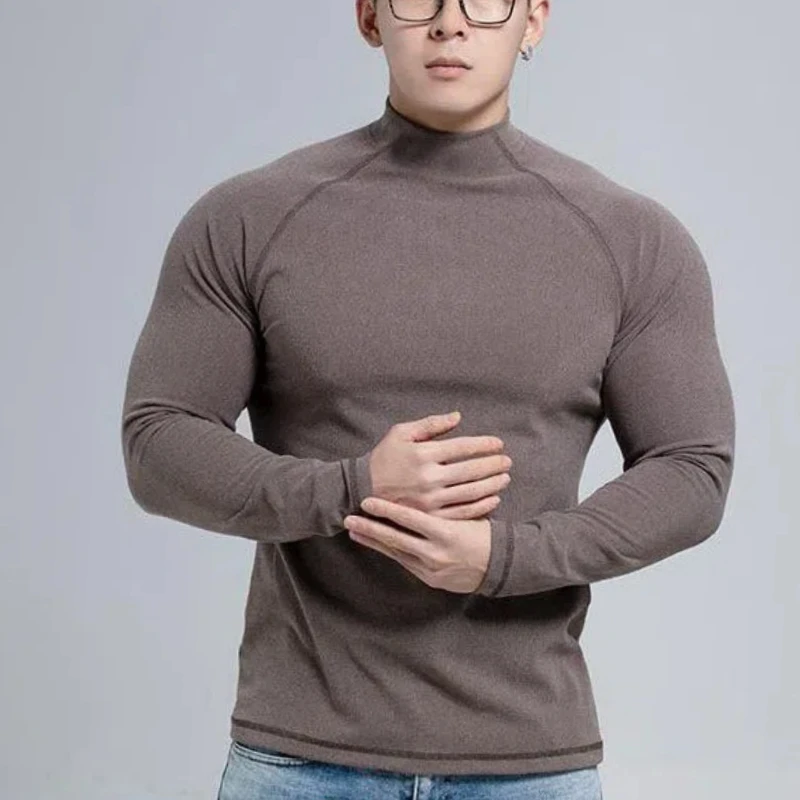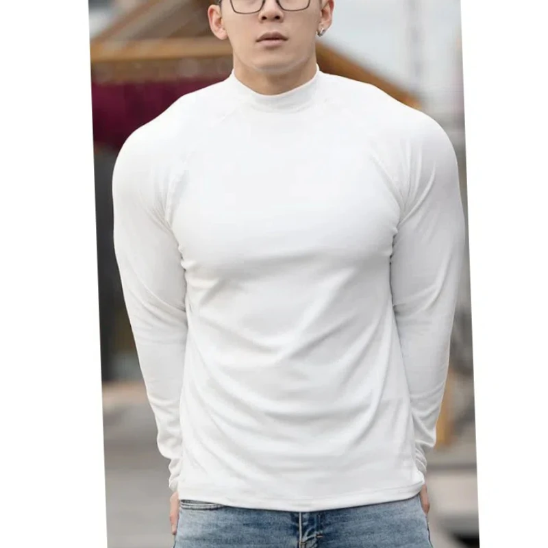 Spring Autumn New Fashion Half High Collar Long Sleeve Solid Men's Clothing Casual Bottoming Shirt Korean All-match Trend Tops