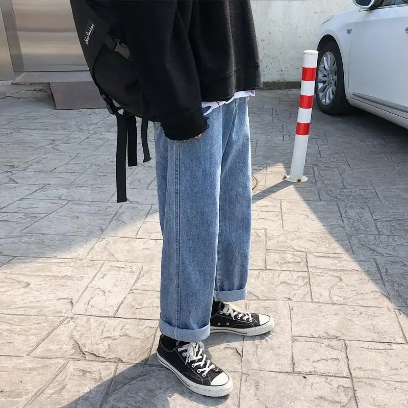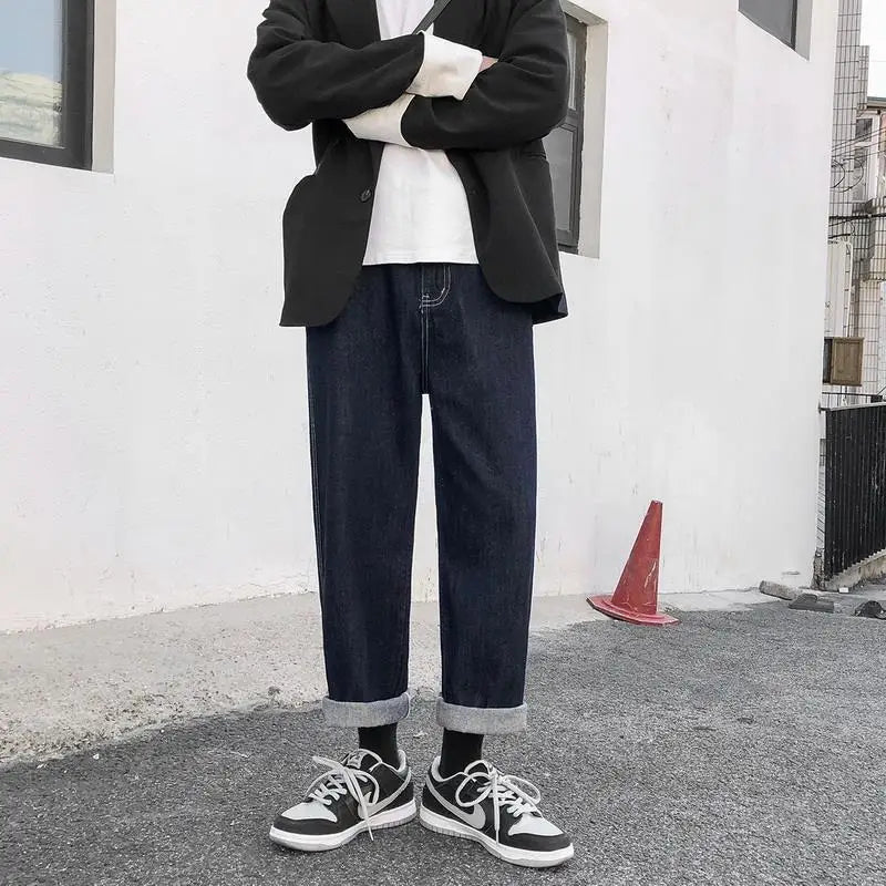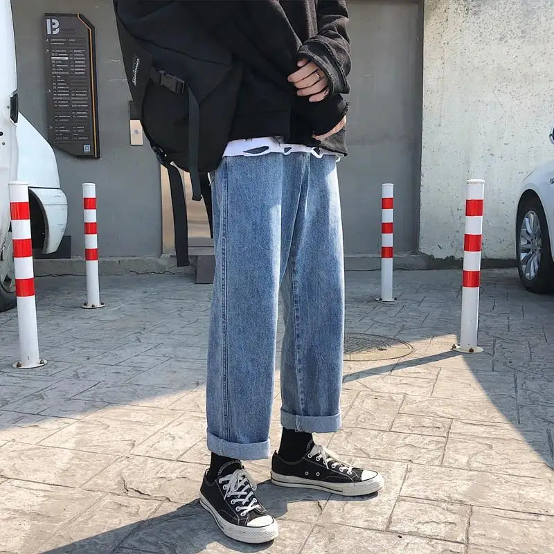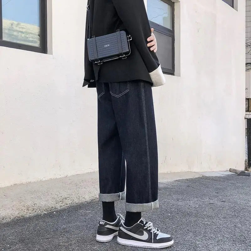 Spring Autumn New Fashion High Waist Solid Jeans Men's Clothing Pocket Button Japanese Style Trend Casual Loose All-match Pants