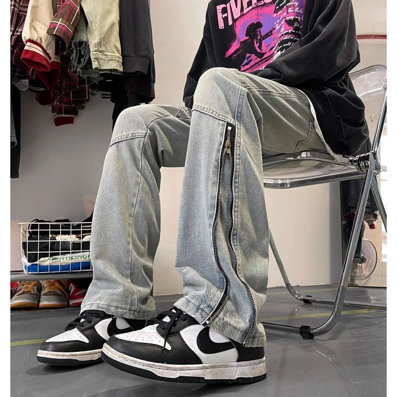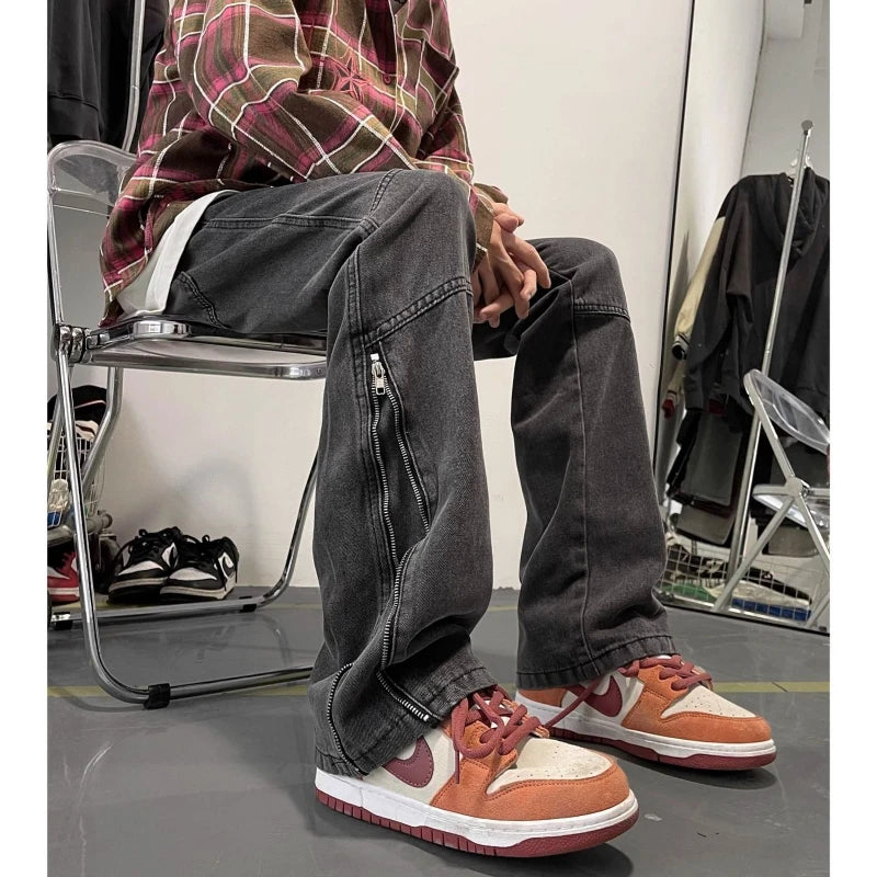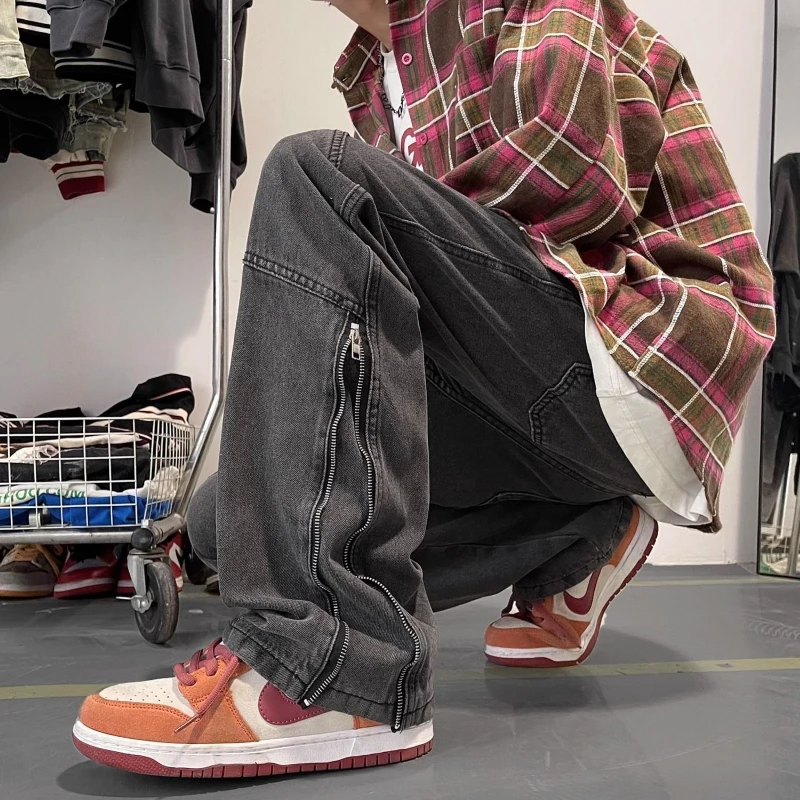 Spring Autumn New Fashion Middle-waisted Button Zipper Men's Clothing Loose Jeans All-match Youth Korean Trend Straight Pants