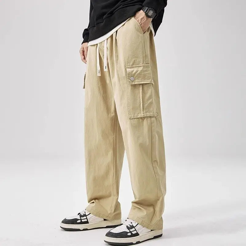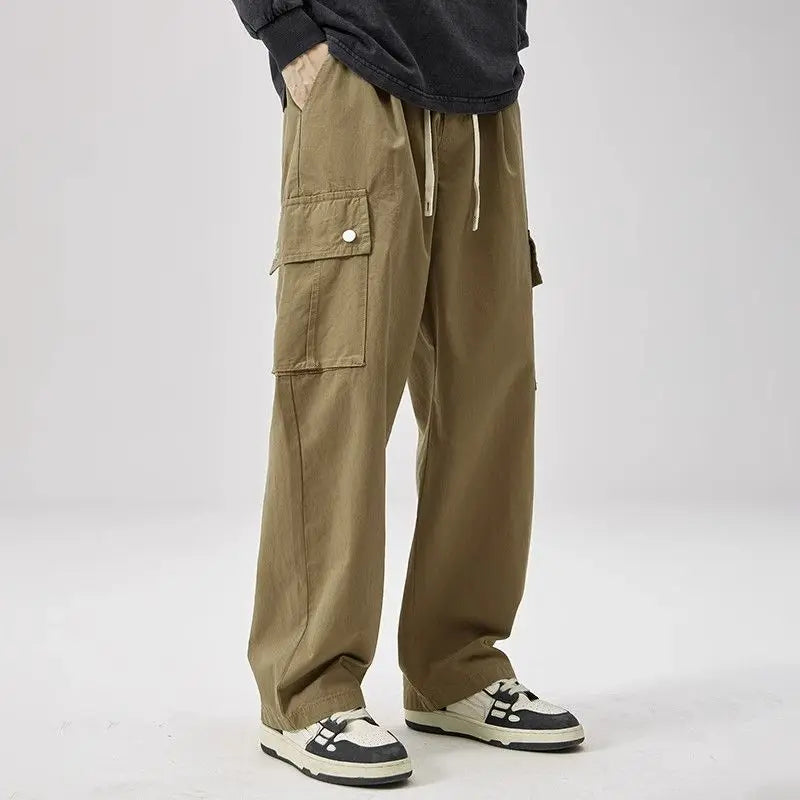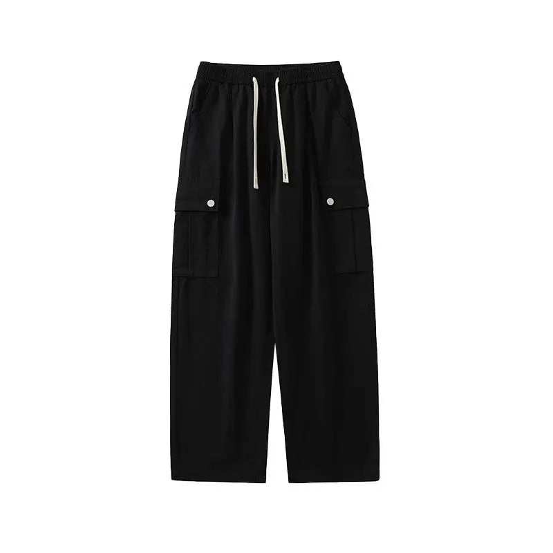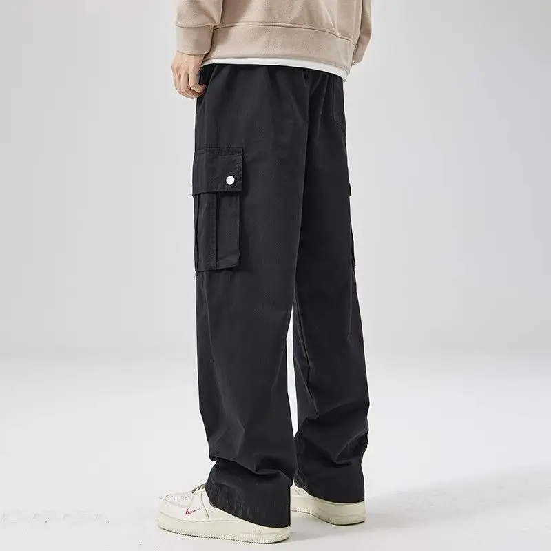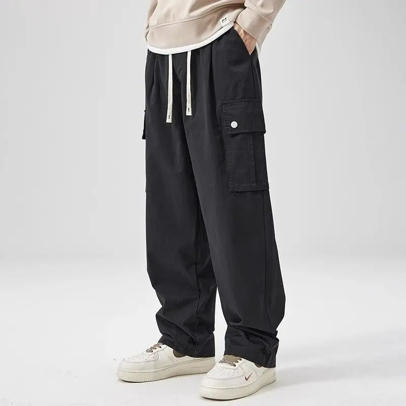 Spring Autumn New Fashion Solid Casual Men's Clothing Elastic Waist Drawstring Pockets Pleated Loose American Style Cargo Pants