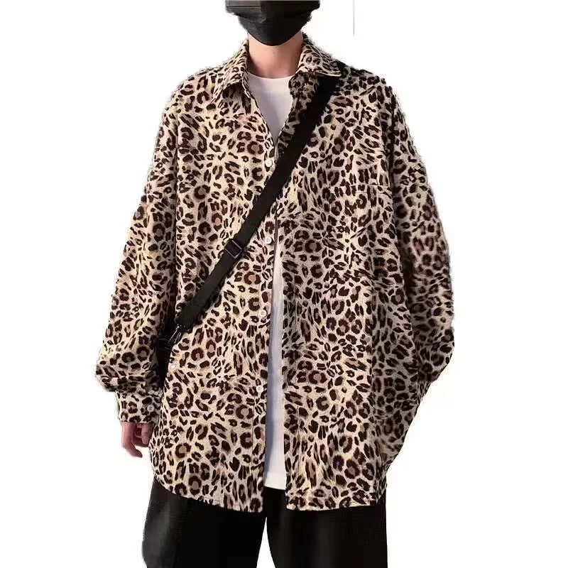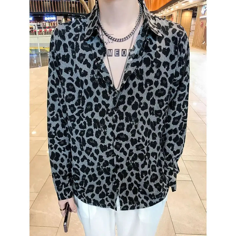 Spring Autumn New Fashion Turn-down Collar Long Sleeve Leopard Blouse Men's Clothing Korean All-match Simplicity Button Shirts