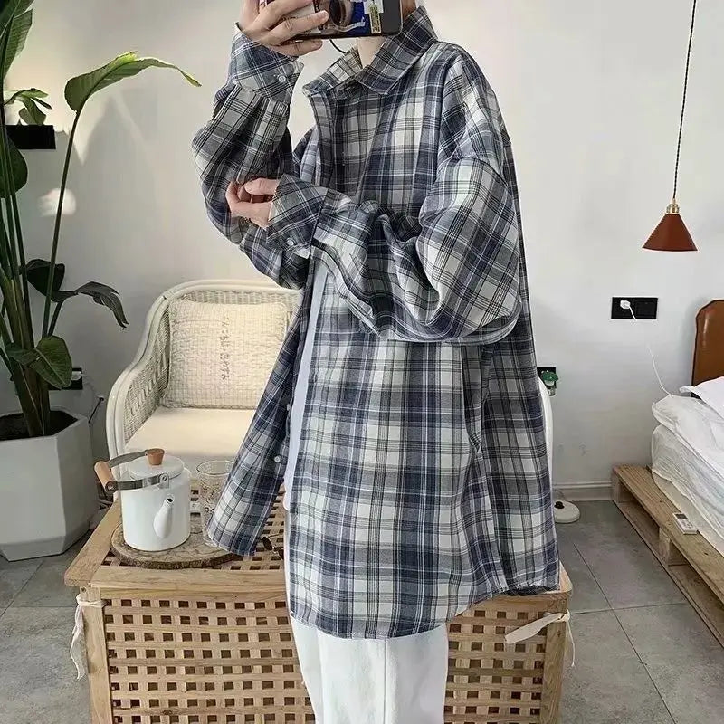 Spring Autumn New Fashion Turn-down Collar Long Sleeve Plaid Blouse Men's Clothing Korean All-match Simplicity Button Y2K Shirts