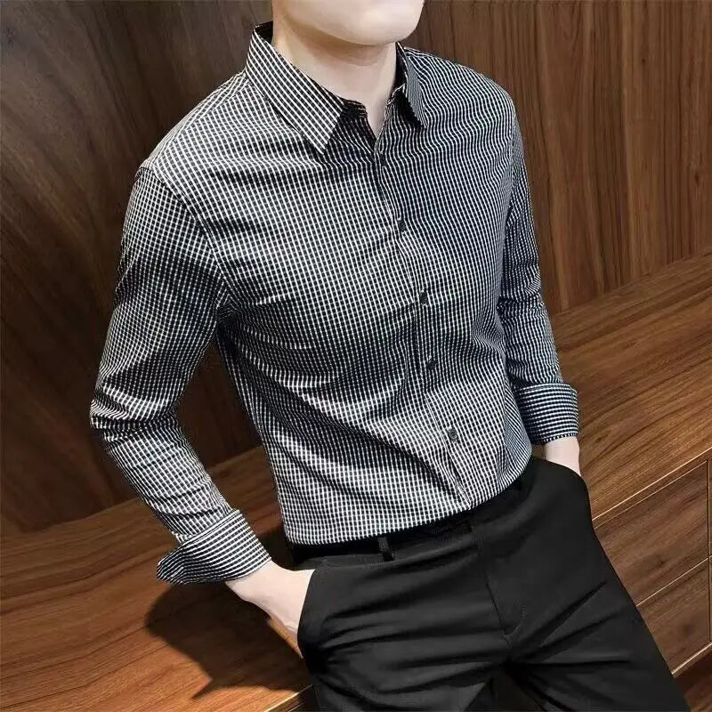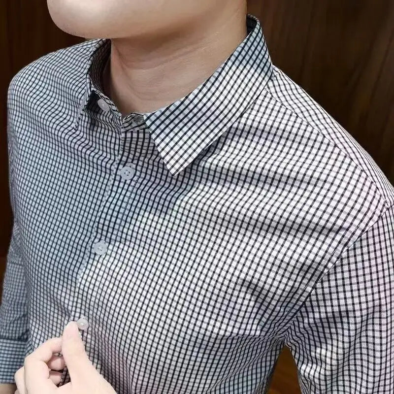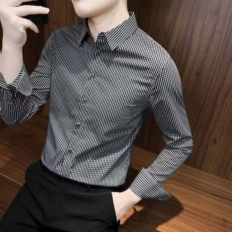 Spring Autumn New Fashion Turn-down Collar Long Sleeve Plaid Blouse Men's Clothing Slim All-match Korean Trend Simplicity Shirts