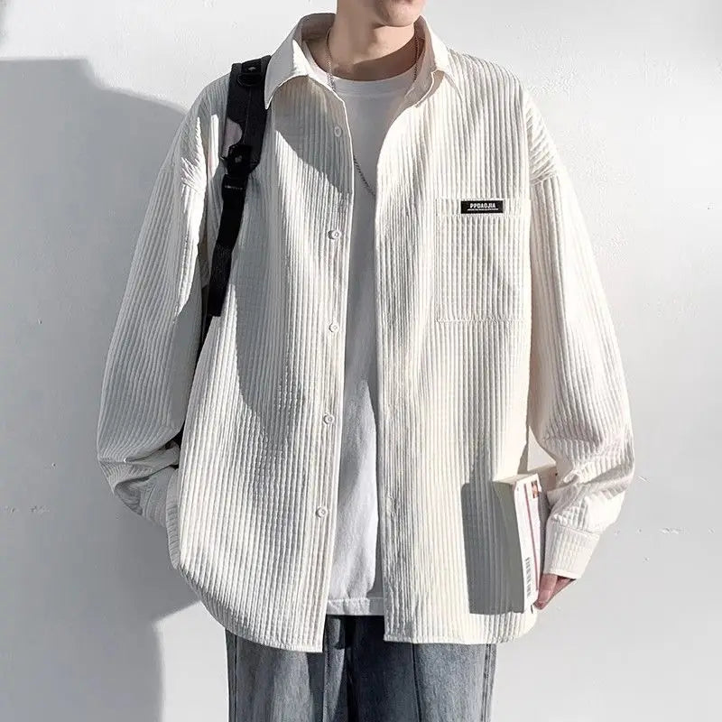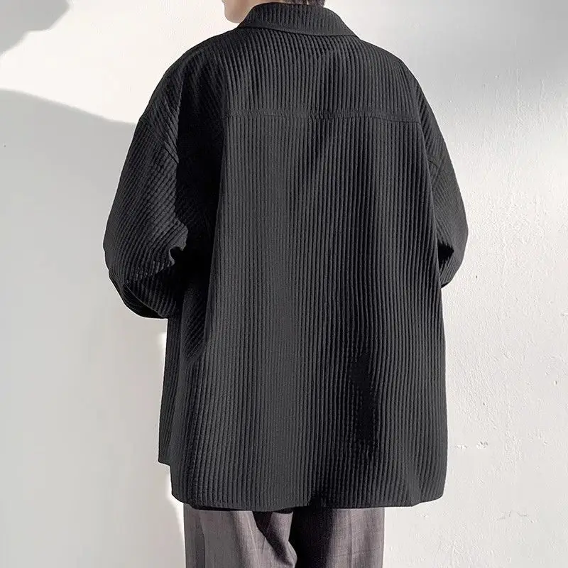 Spring Autumn New Fashion Turn-down Collar Long Sleeve Solid Color Striped Blouse Men's Clothing Korean Button All-match Shirts