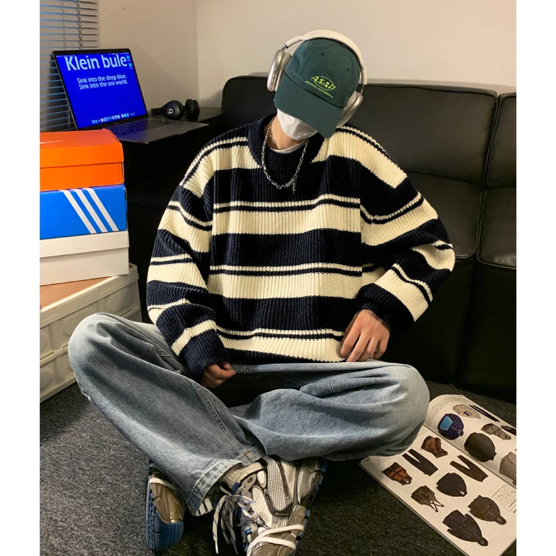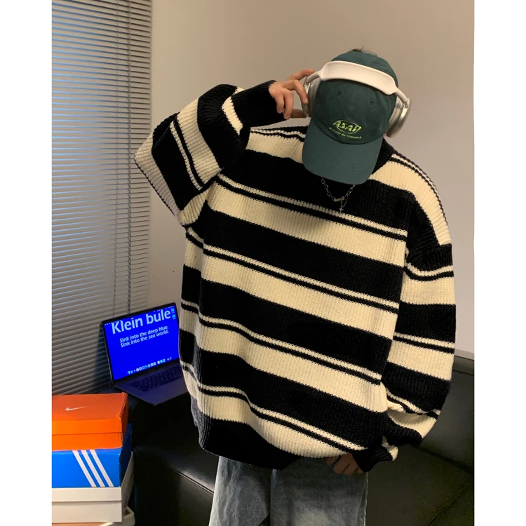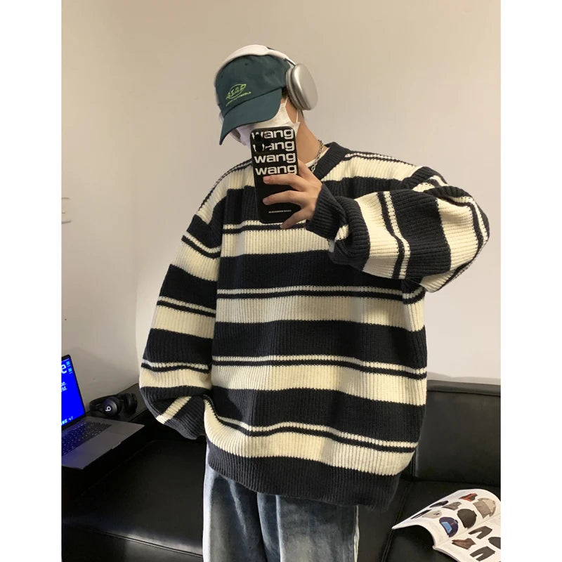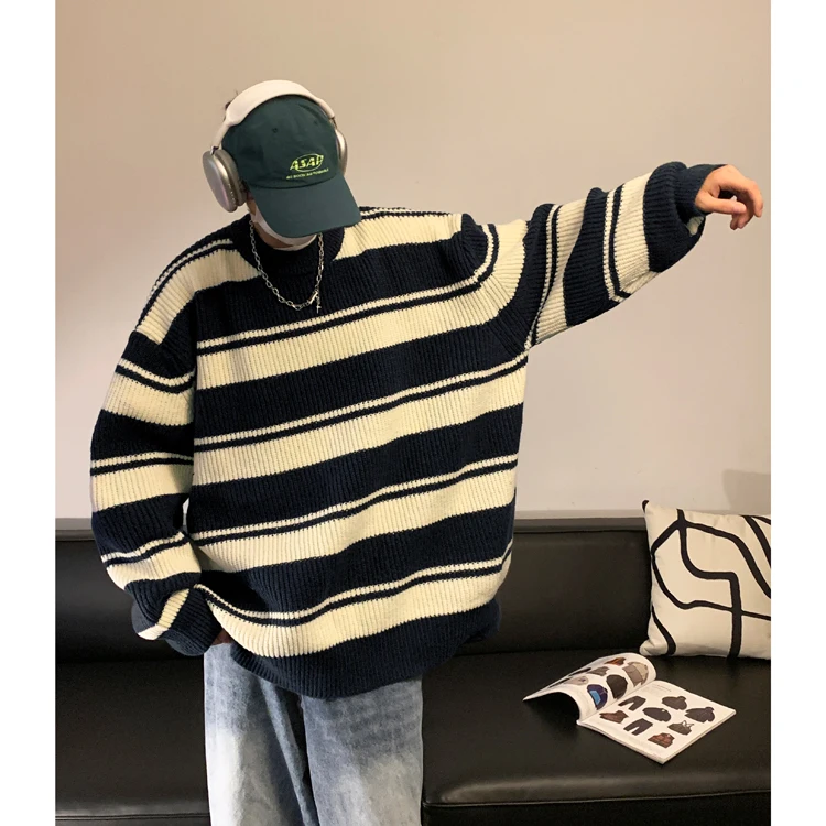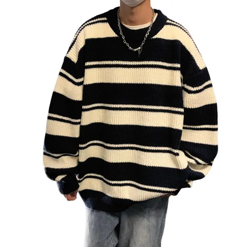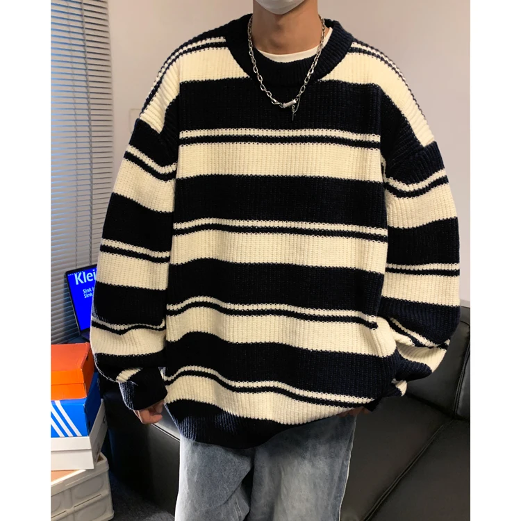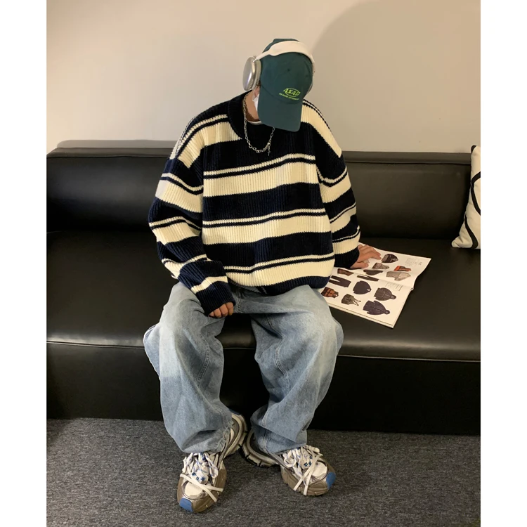 Striped Men Sweaters Men's Pullovers Harajuku Streetwear Winter New Casual Loose Wool Warm Knited Turtleneck Pullovers Top 3XL