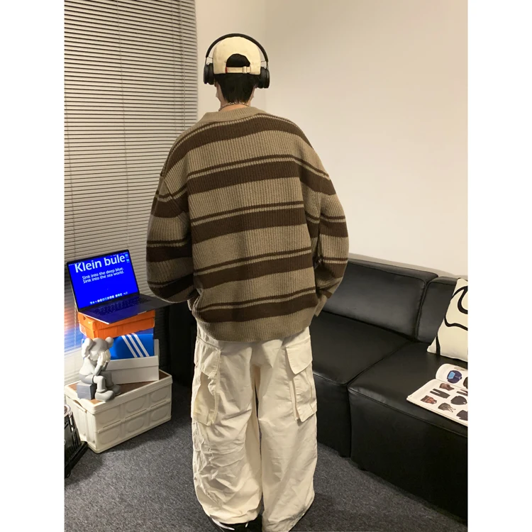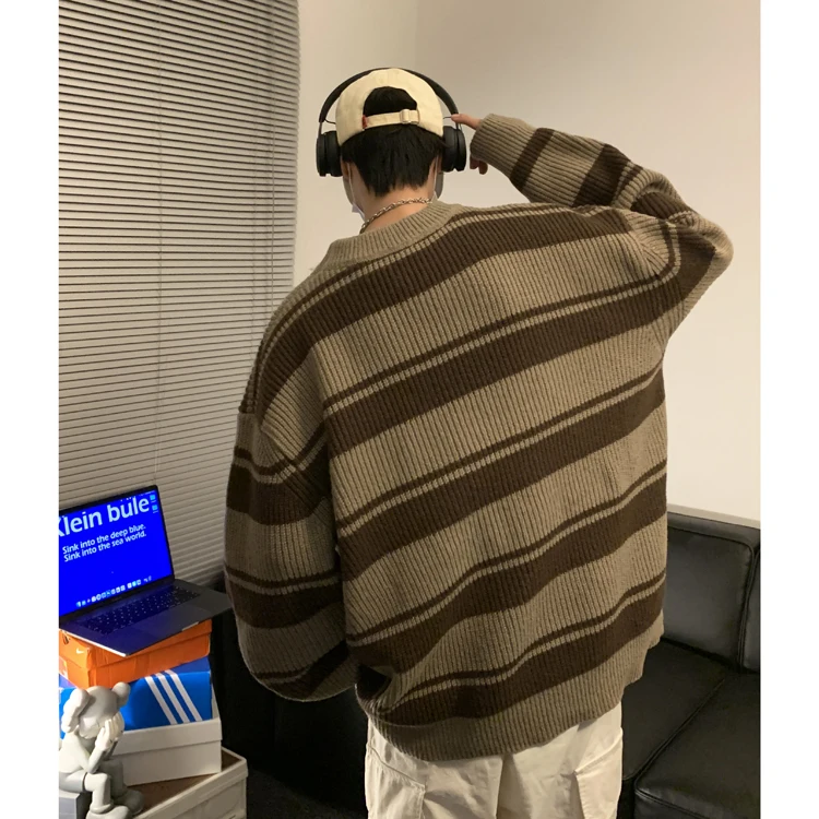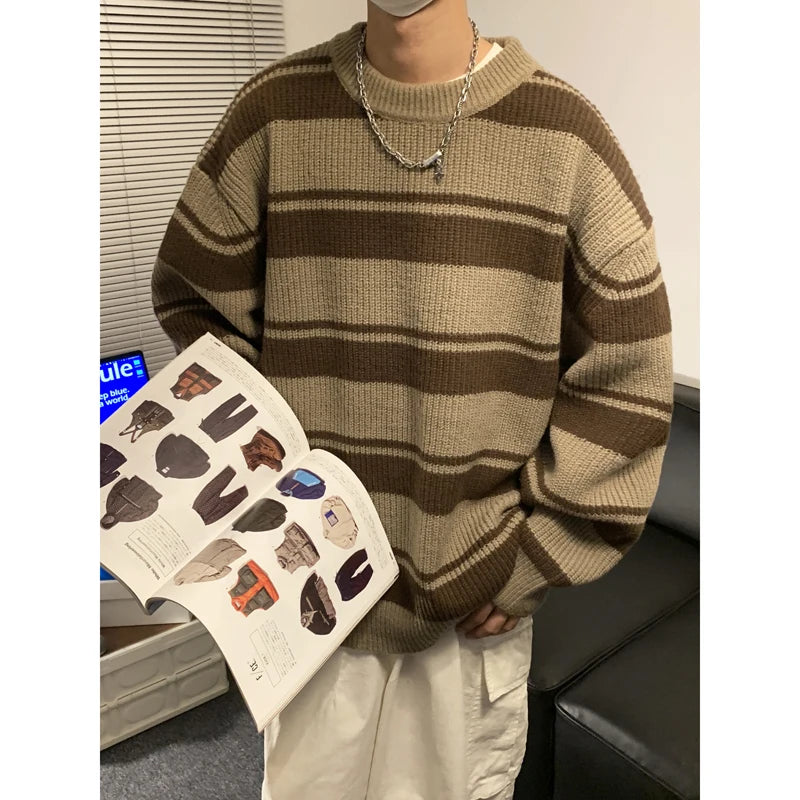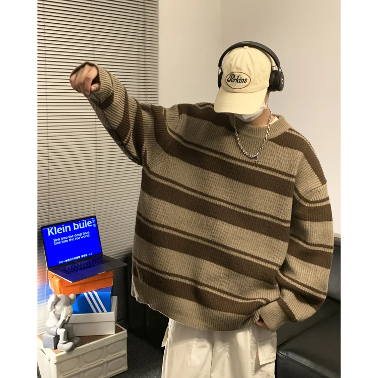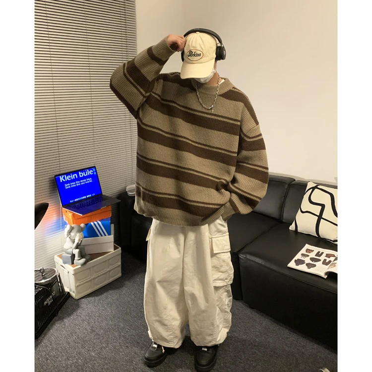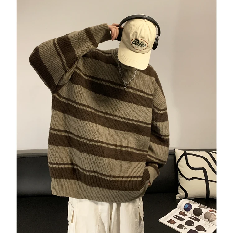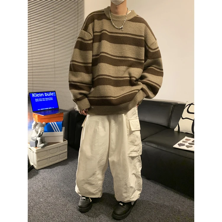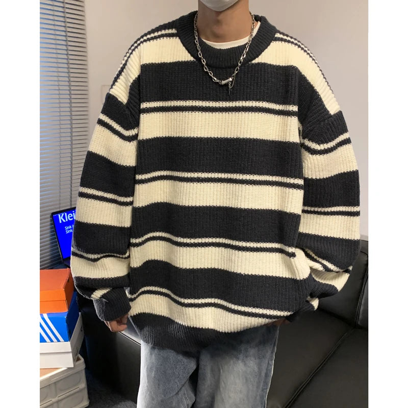 Striped Men Sweaters Men's Pullovers Harajuku Streetwear Winter New Casual Loose Wool Warm Knited Turtleneck Pullovers Top 3XL