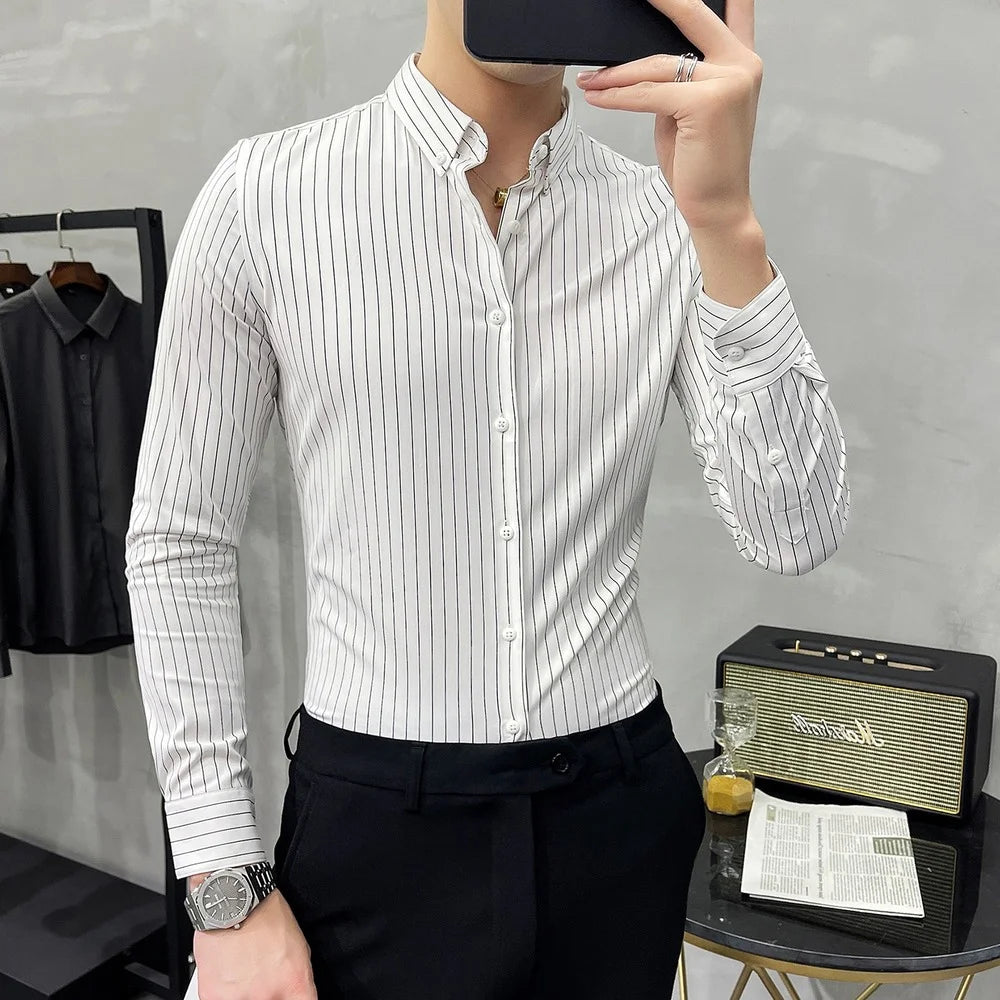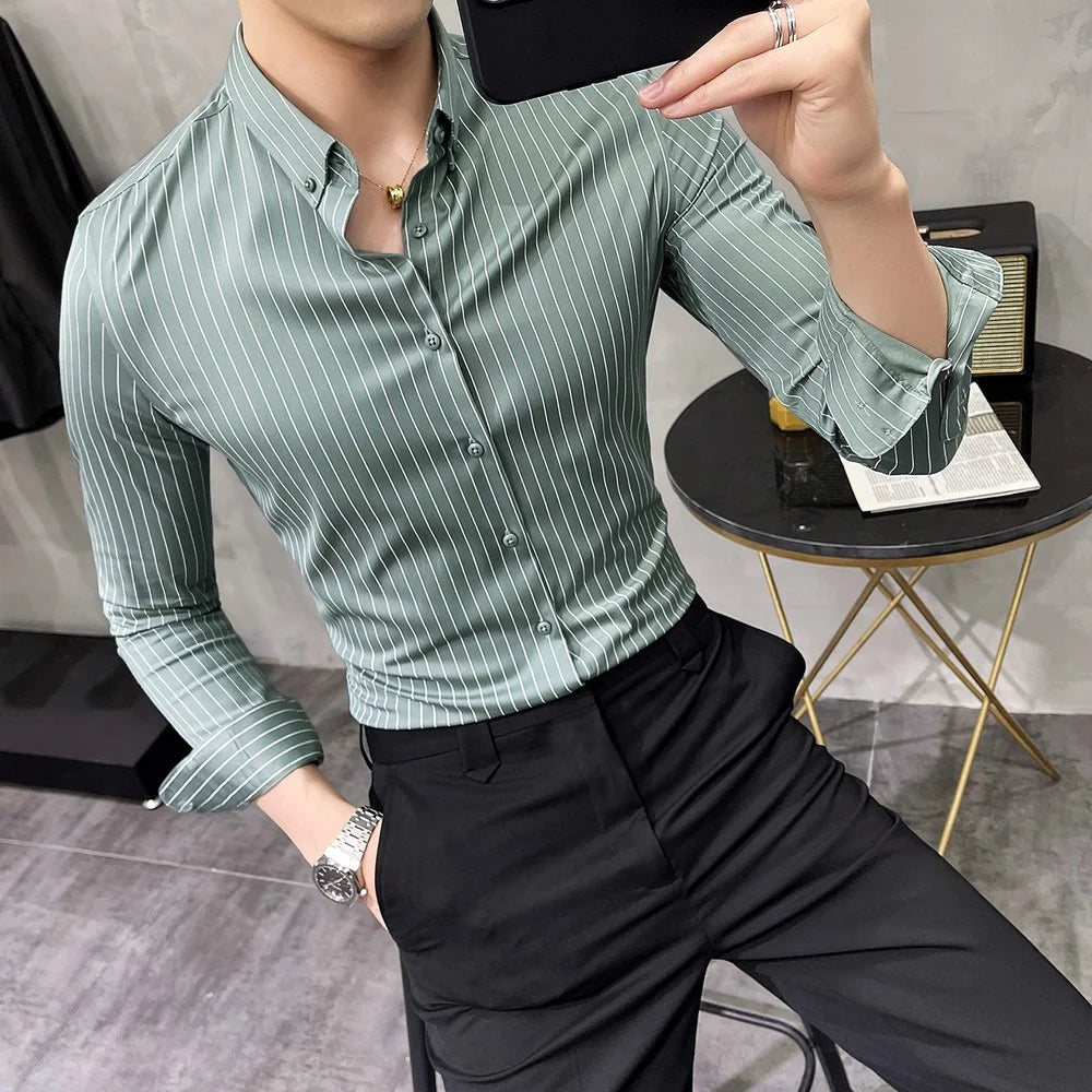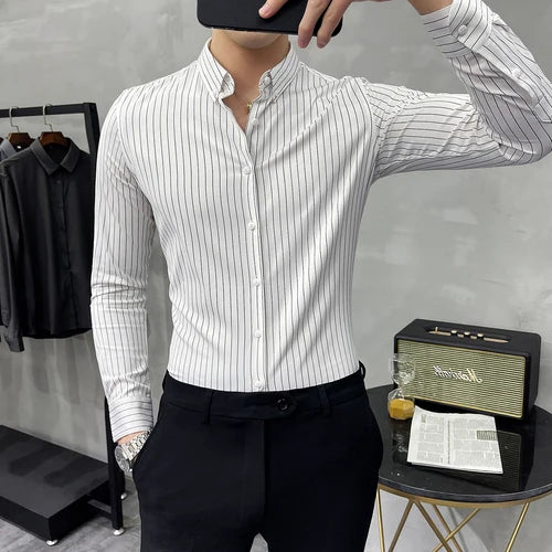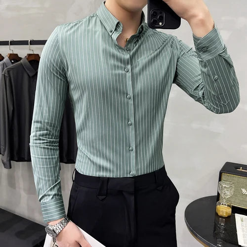 Striped Shirt Mens Spring New British Style Business Casual Long Sleeve Iron-Free Anti-Wrinkle Dress Shirt Mens Clothing