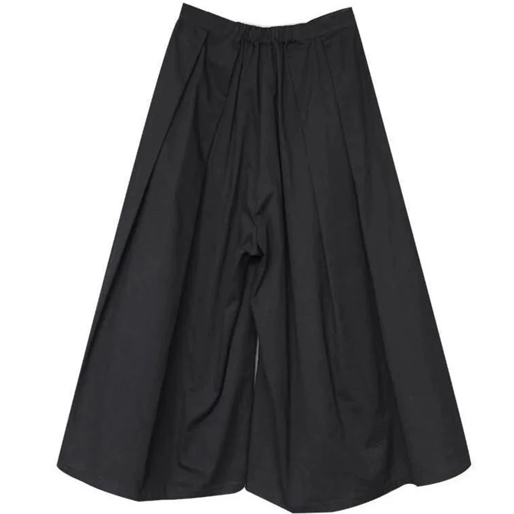 Trendy Gothic Dark Style Loose Cropped Hakama Pants Wide Leg Pants New Large Size Design Sense Samurai Pants Men's Clothing