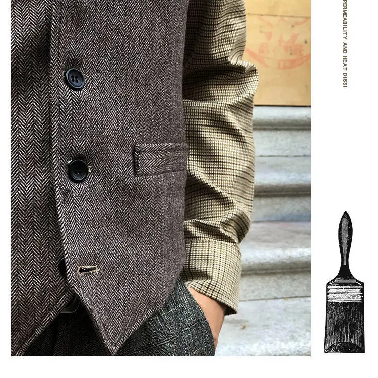Vests Men Vintage Slim Classic Smart Casual Woolen Coats Autumn American Style Handsome Mature High Street All-match Fashion New