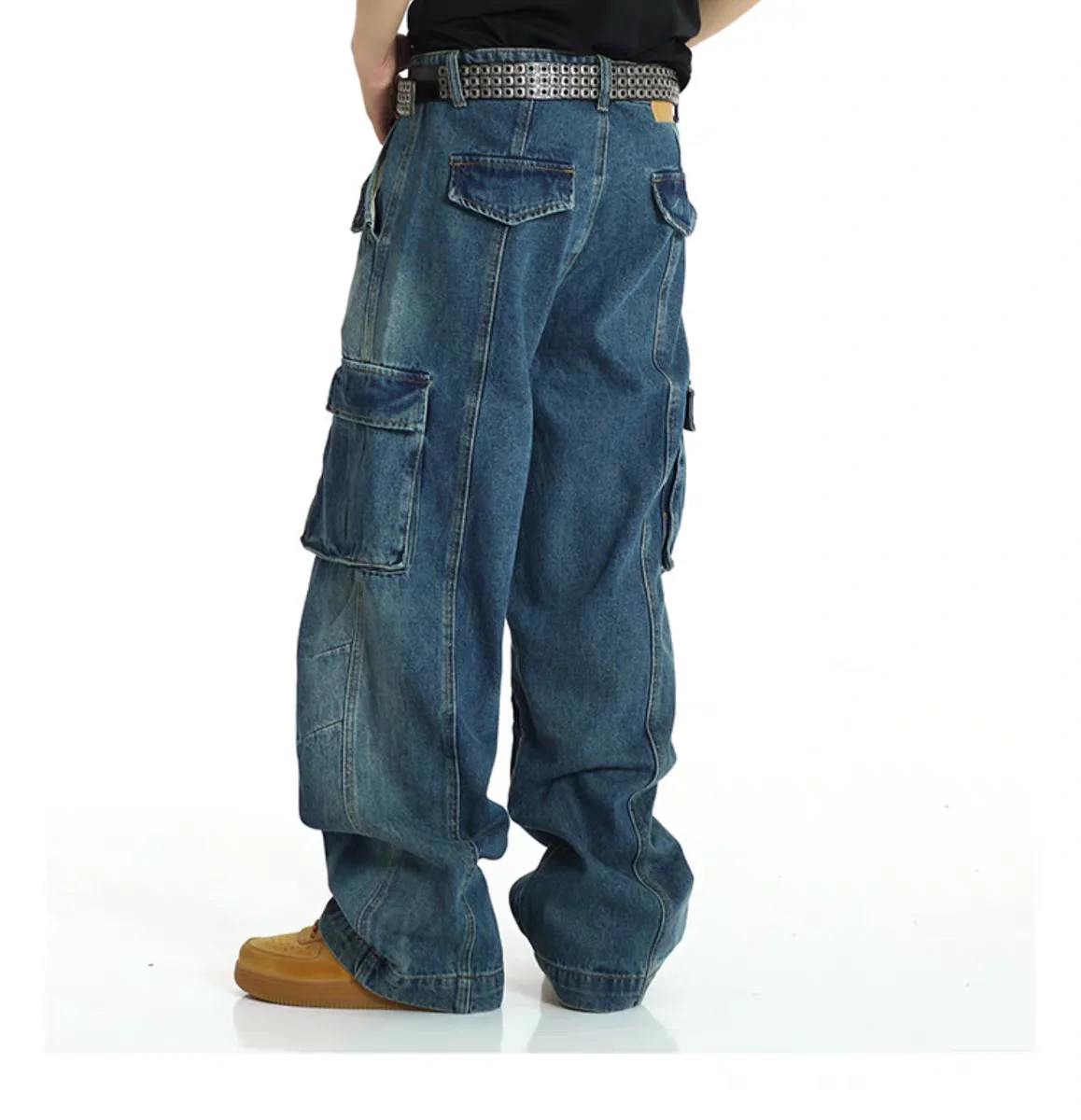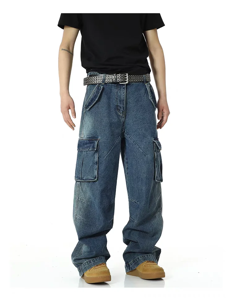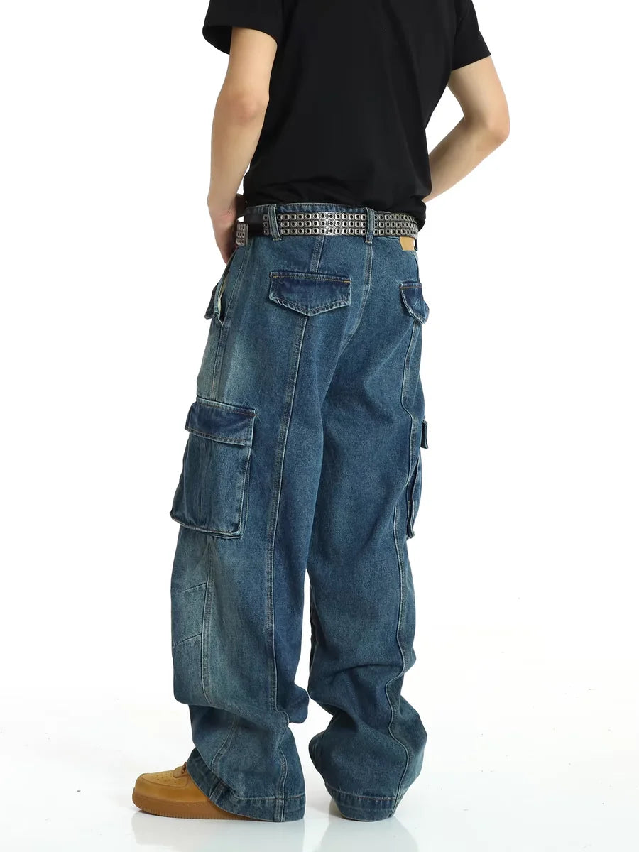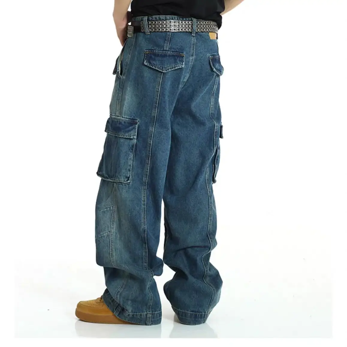 Vintage Men's Baggy Denim Trousers New Big Pocket Y2K Harajuku High Street Hip Hop Jeans Casual Stretch Fabric Denim Pants