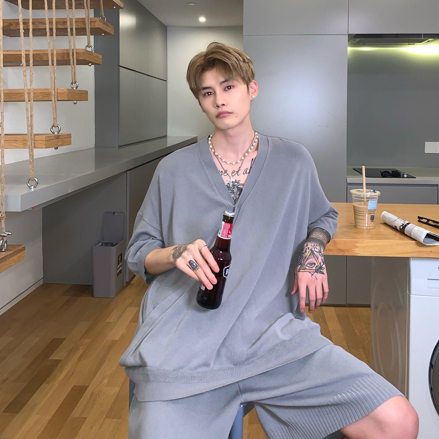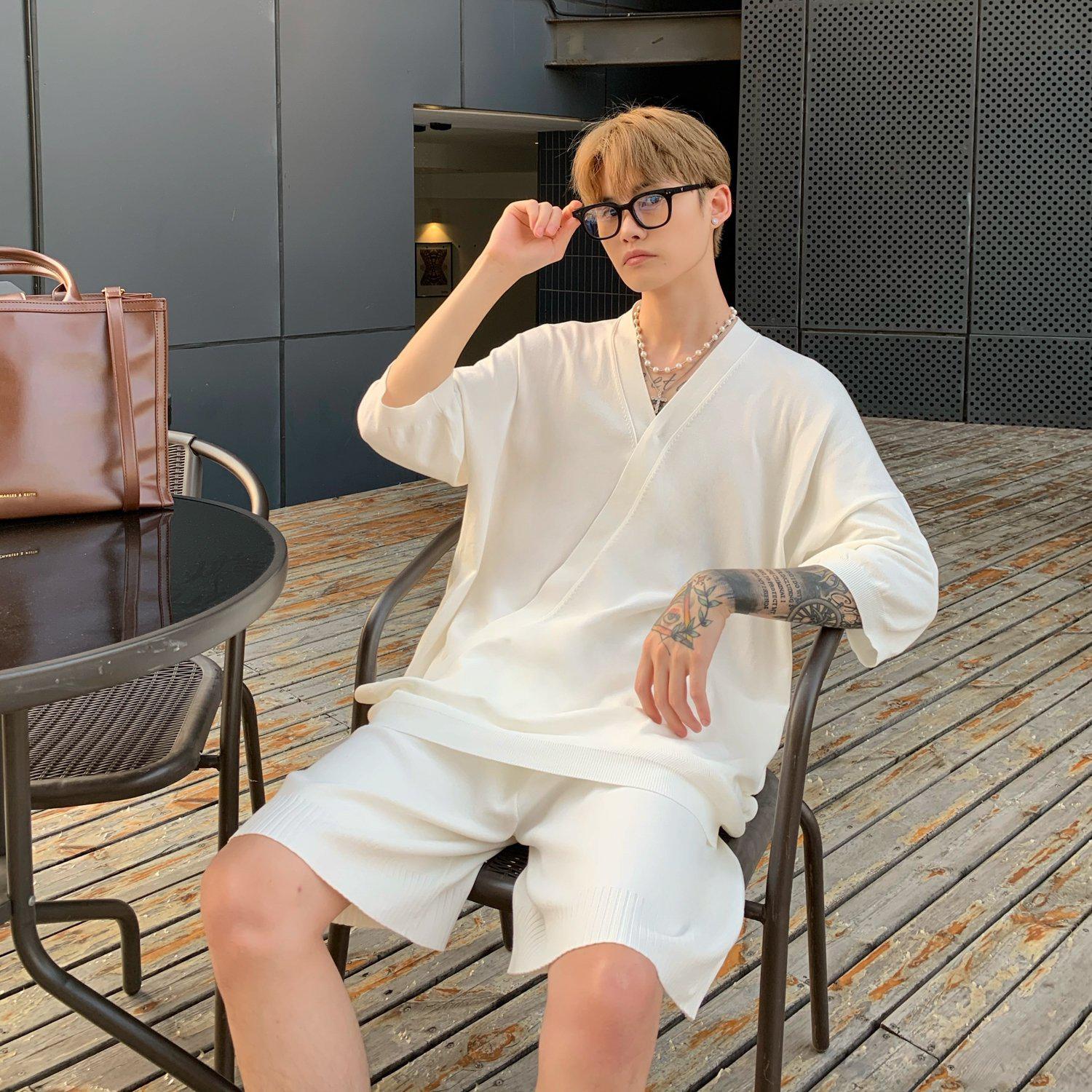 Top e pantaloncini a V-Neck Knitted