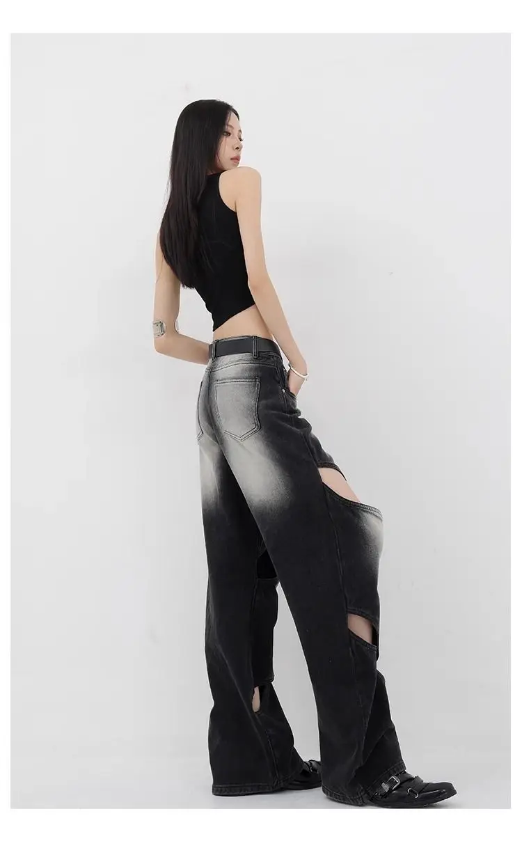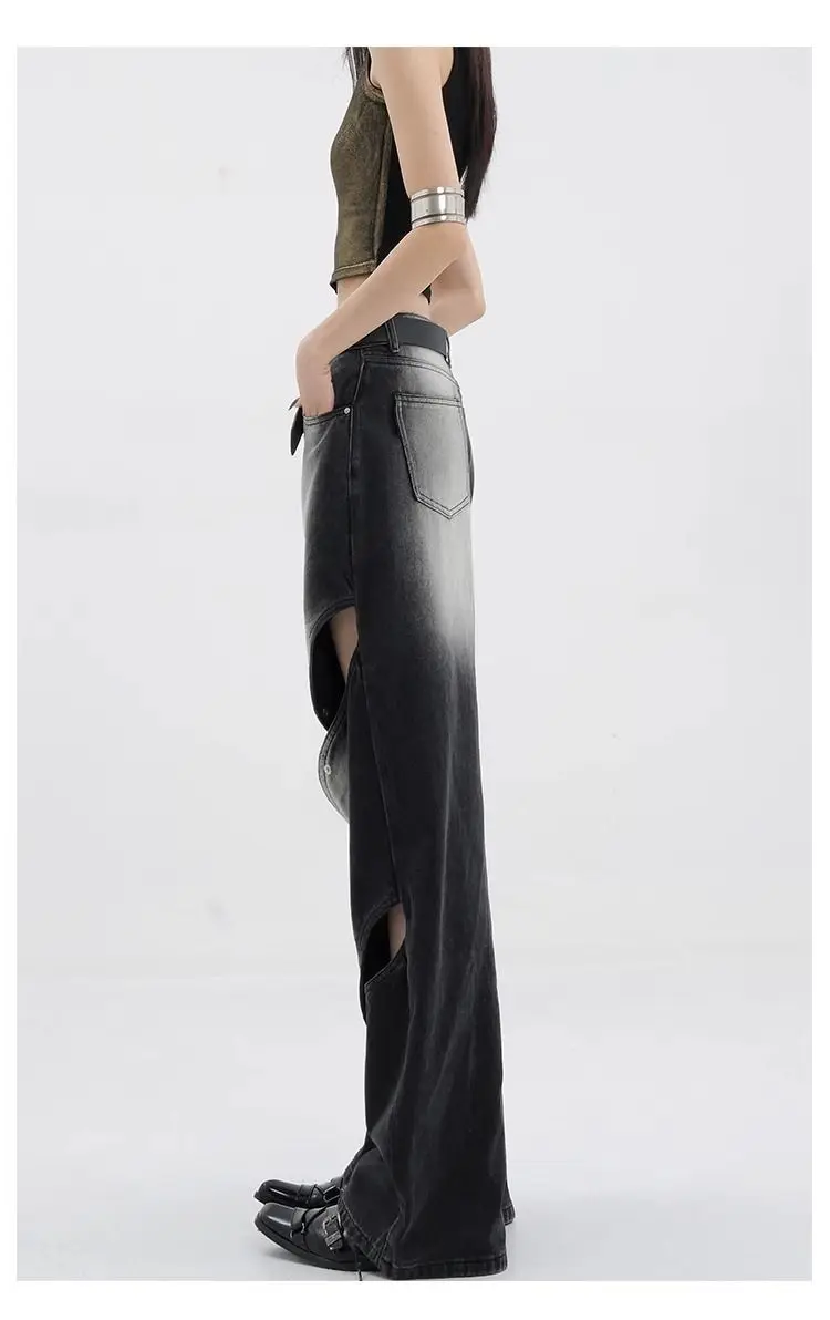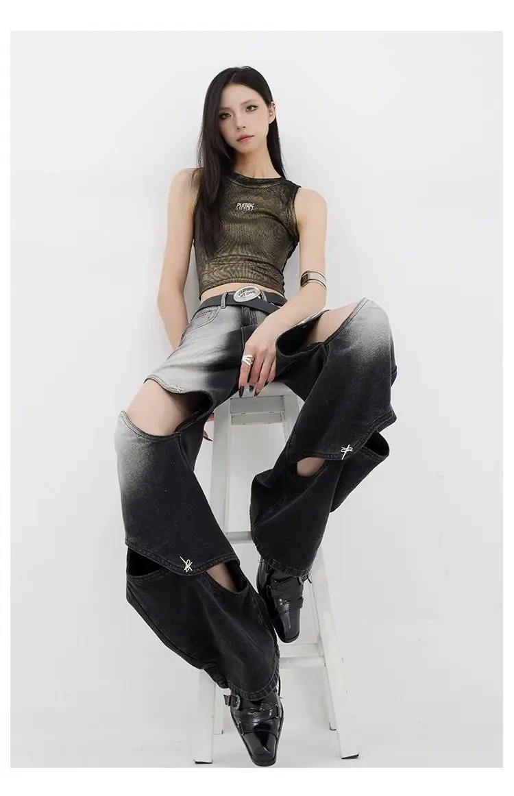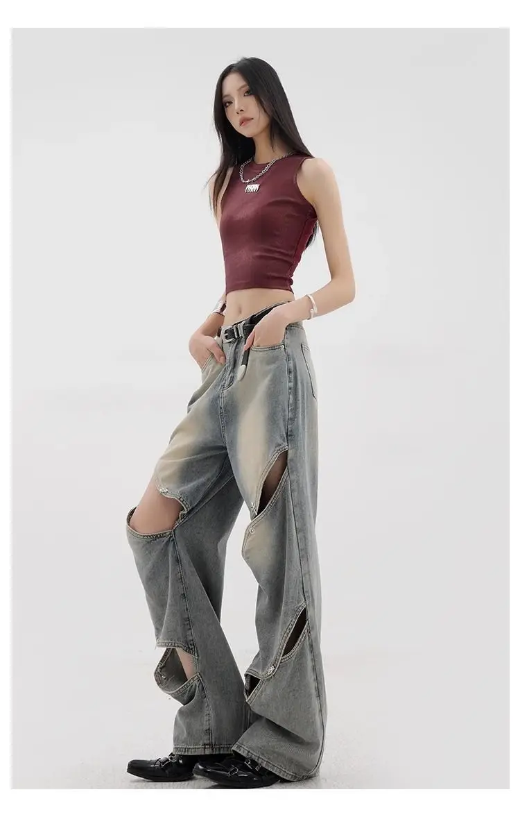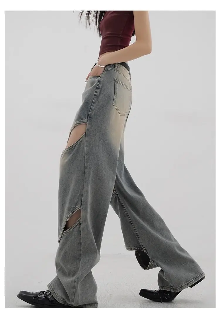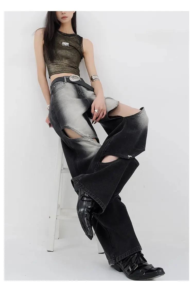 European hip-hop high street men and women trend deconstruction design straight leg jeans couple loose retro casual pants y2k