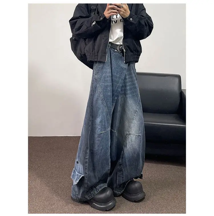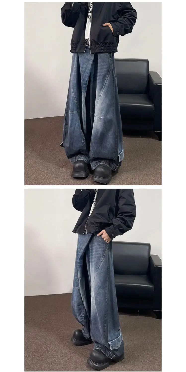 Hip hop high street men and women trendy hip-hop straight leg washed jeans for couples loose retro casual wide leg pants Y2K