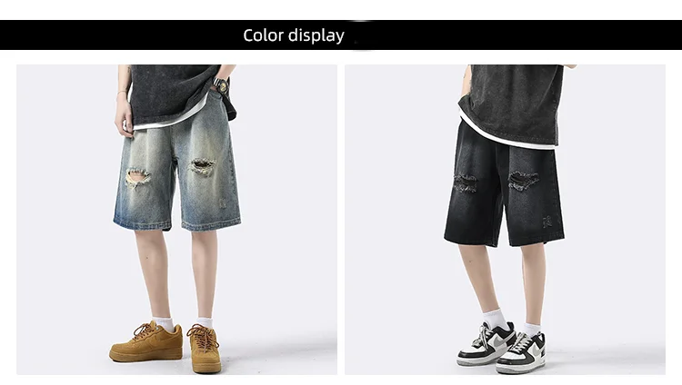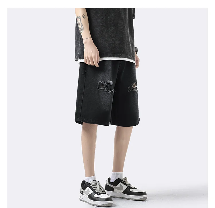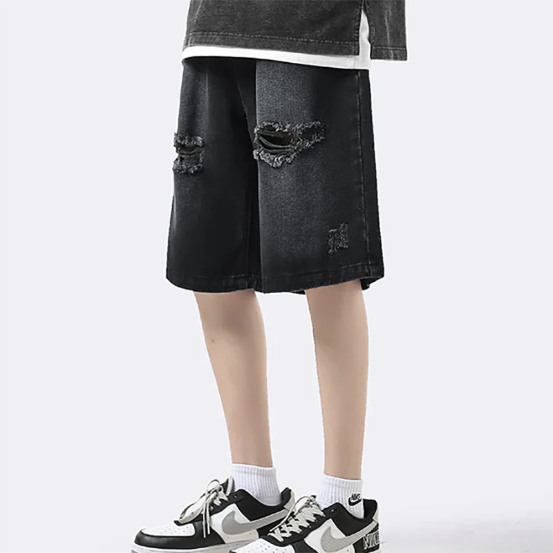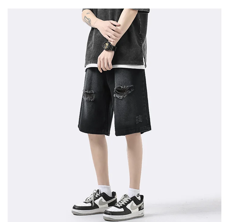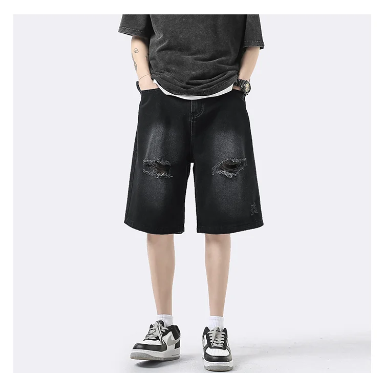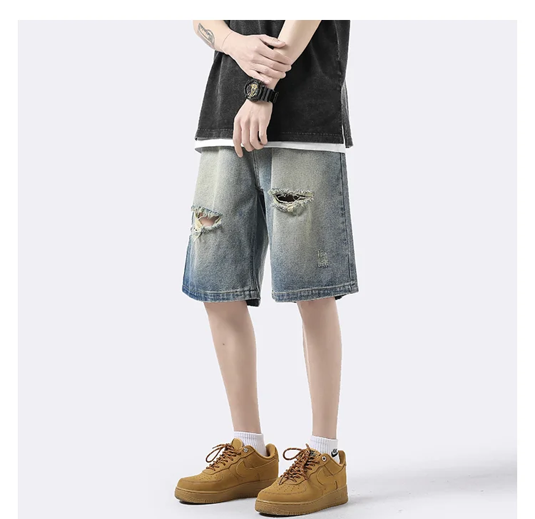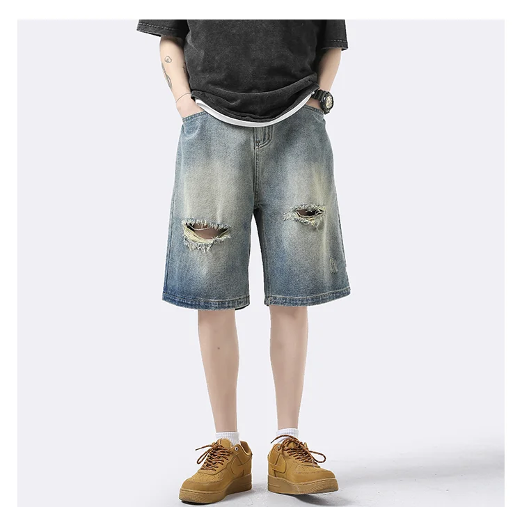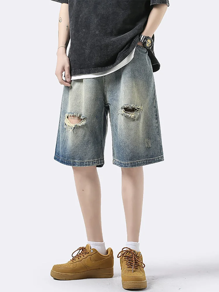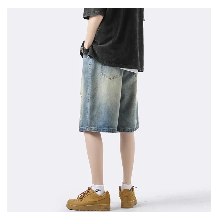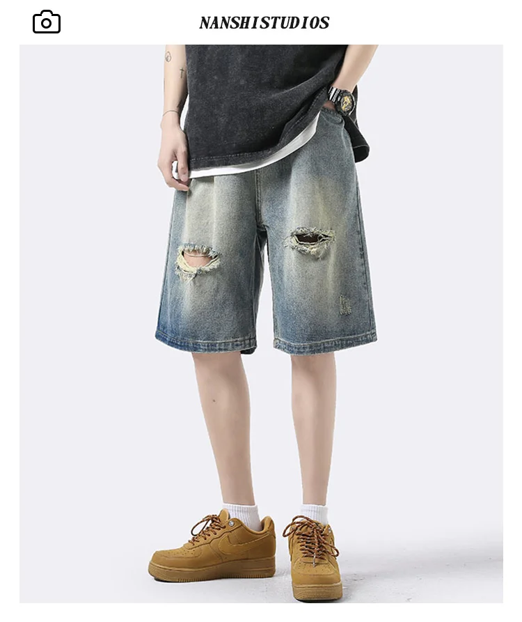 Men Ripped Jeans Shorts Y2K Streetwear Retro Trendy Straight Leg Mid Waist Denim Short Summer Designer Popular Original Pants