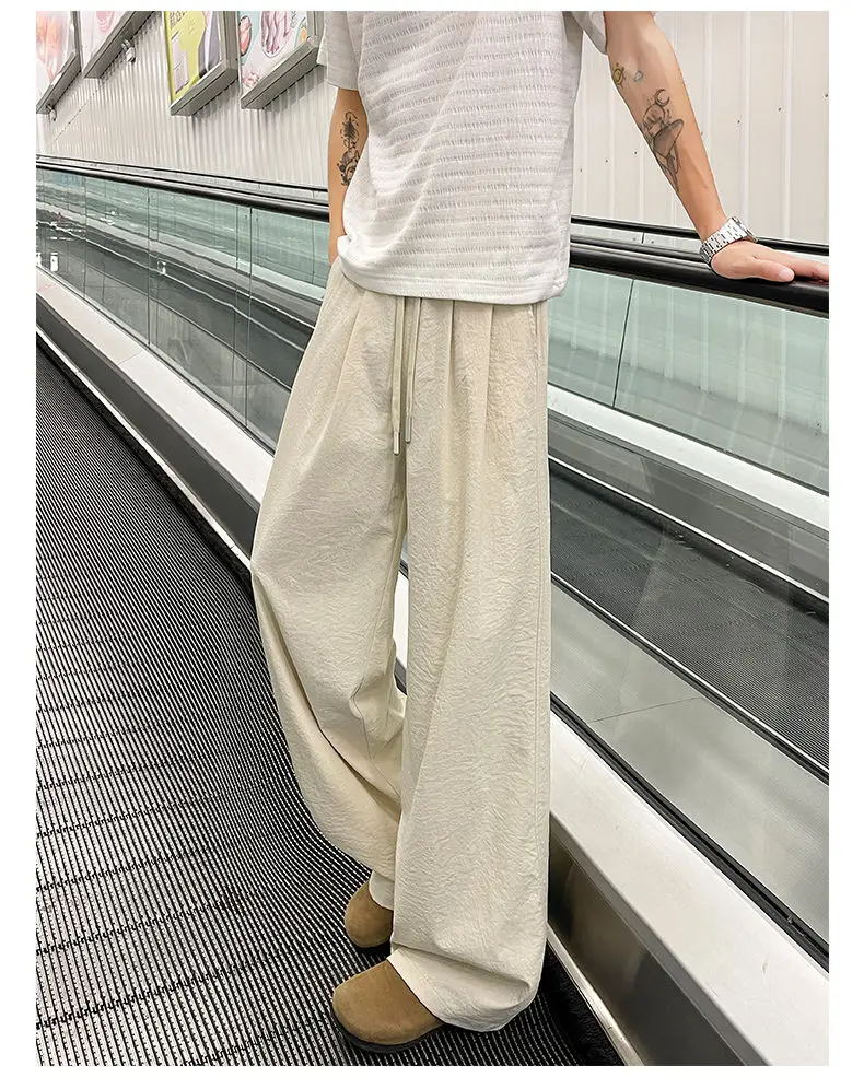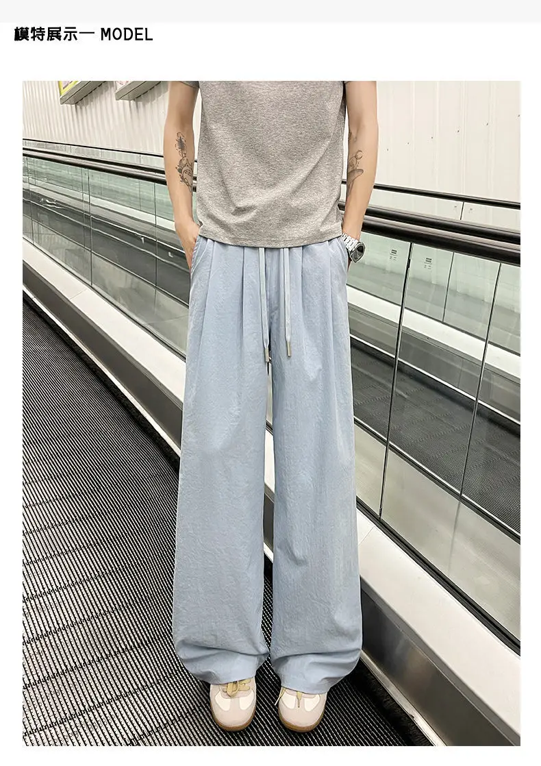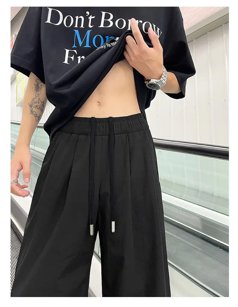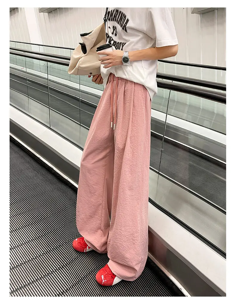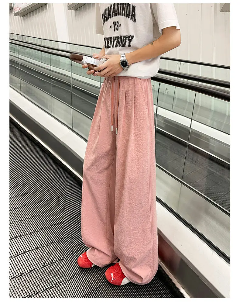 Summer Pink Thin Pants Men Fashion Black Casual Pants Men Streetwear Hip-hop Loose Wide Leg Pants Mens Ice Silk Trousers