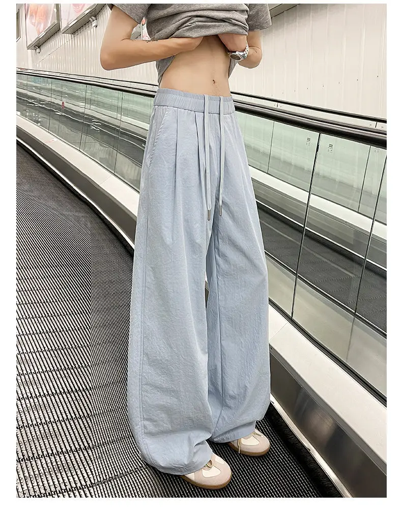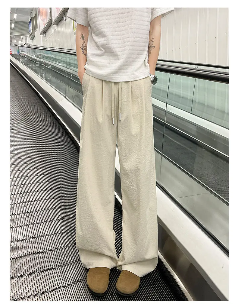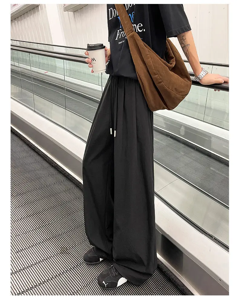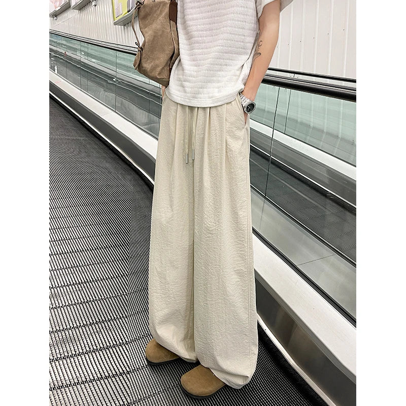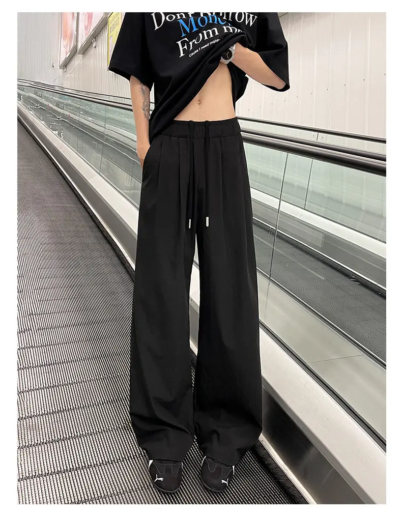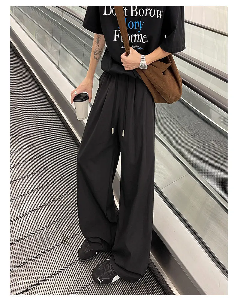 Summer Pink Thin Pants Men Fashion Black Casual Pants Men Streetwear Hip-hop Loose Wide Leg Pants Mens Ice Silk Trousers