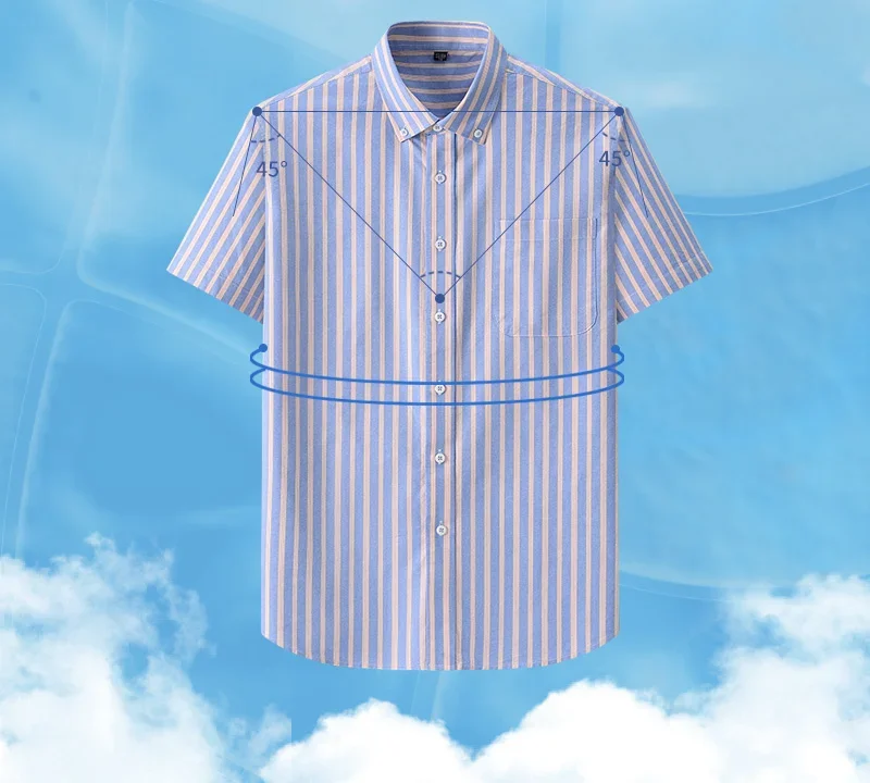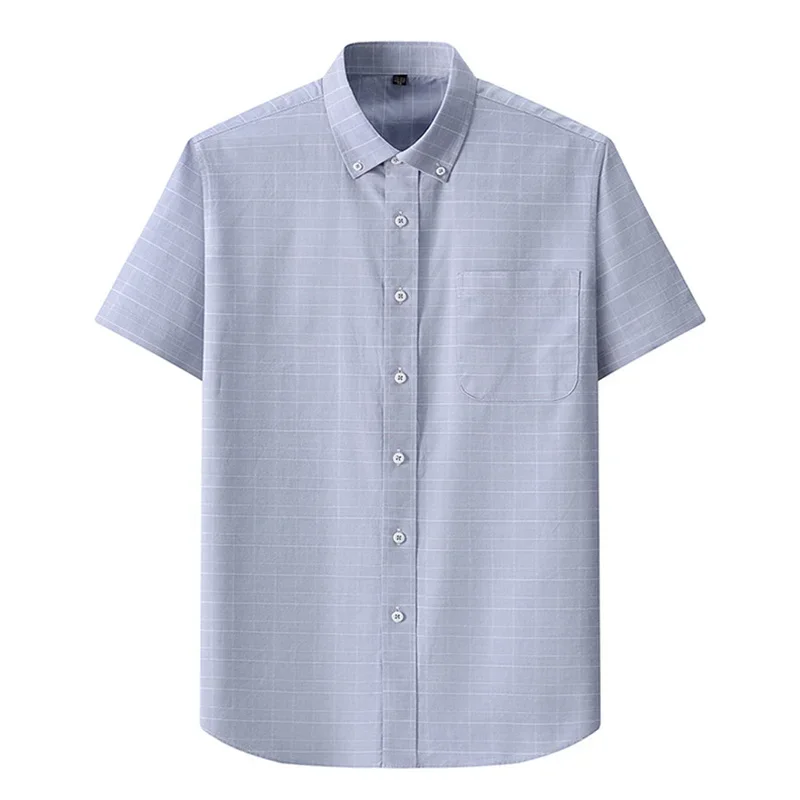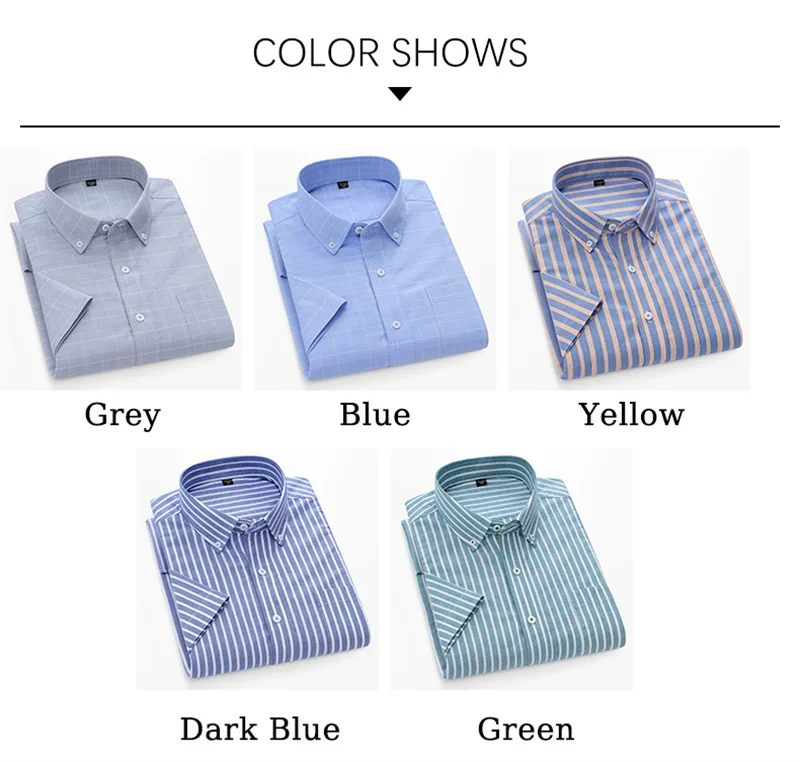 Brand Short Sleeves Oxford Shirts Men 100% Cotton Business Striped Shirts for Man Casual Slim-fit Tops Men
