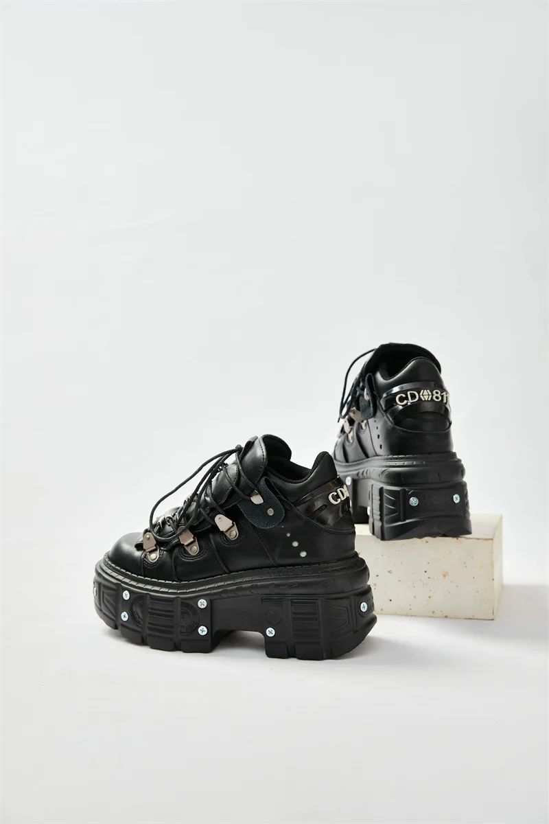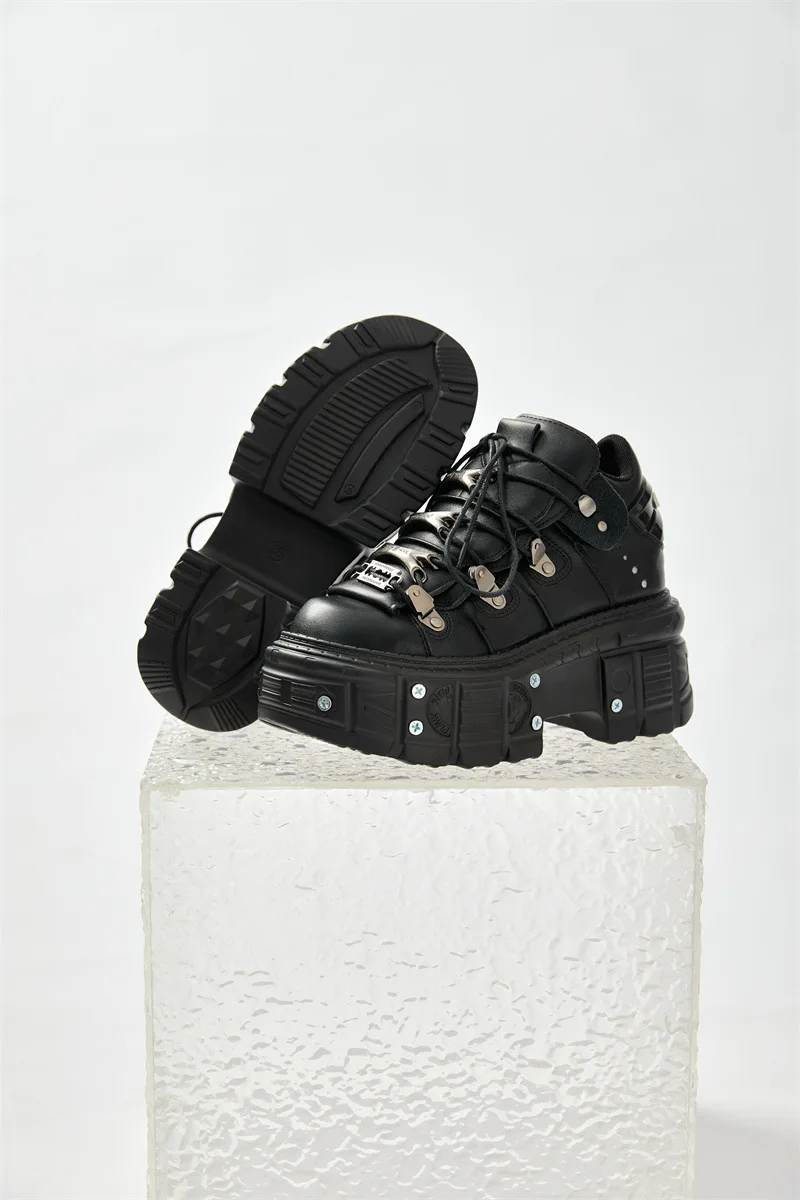 Spring Men's PU Leather Shoes Screw Lace-up Metal Design Thickened Sole Dark Style Casual Male Shoe Trendy
