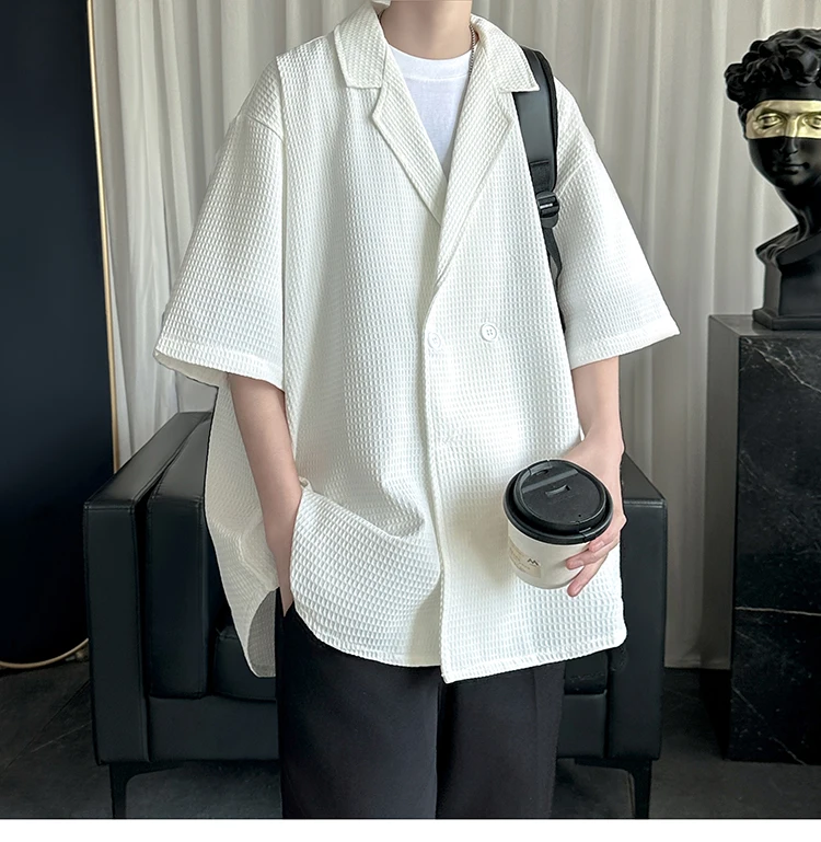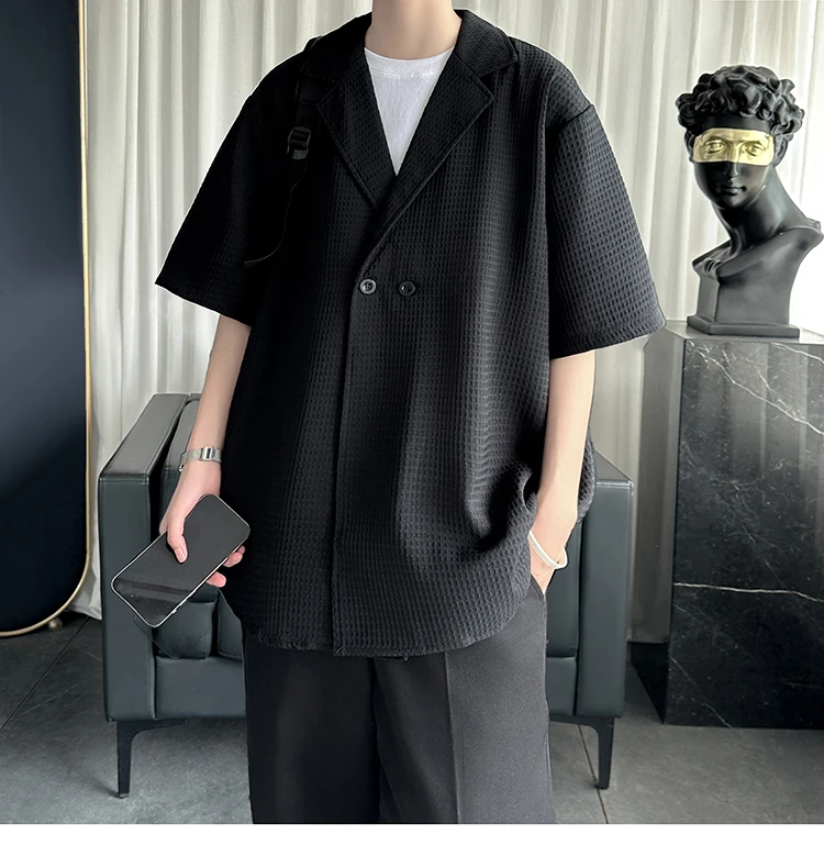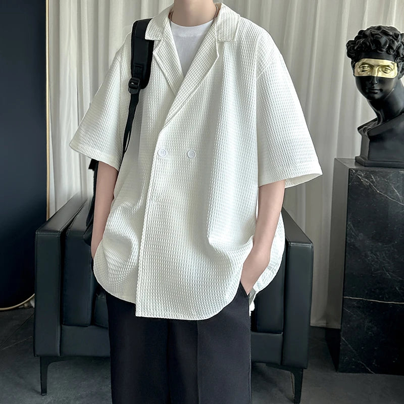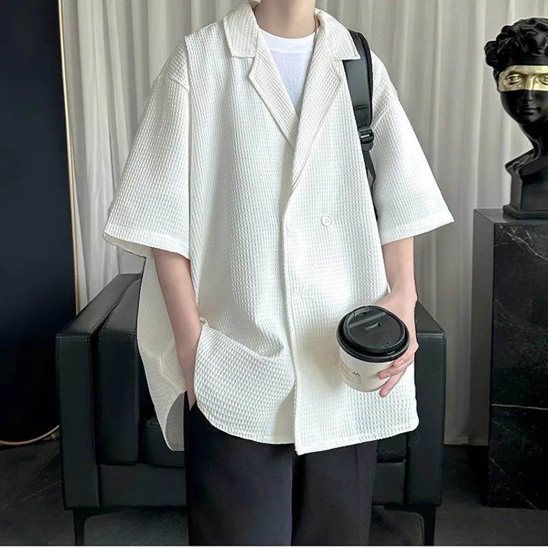 Summer Men Shirts Short Sleeves Camp Collar Luxury Designer High Quality Casual Shirt for Man Black White Oversized Clothes