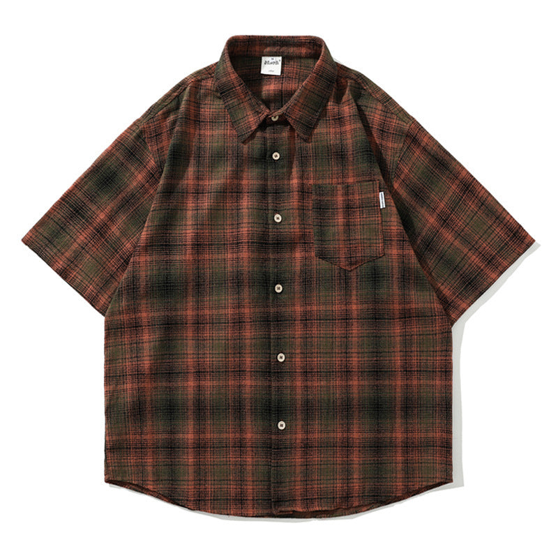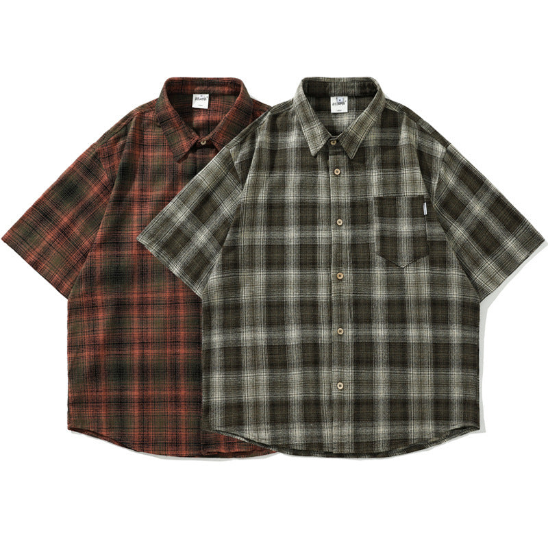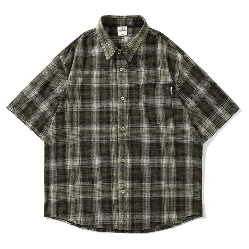 shirt Japanese Style Retro Artistic Youth Plaid Short Sleeve Shirt Men's and Women's Mori Cityboy Profile Half Sleeve Striped Shirt