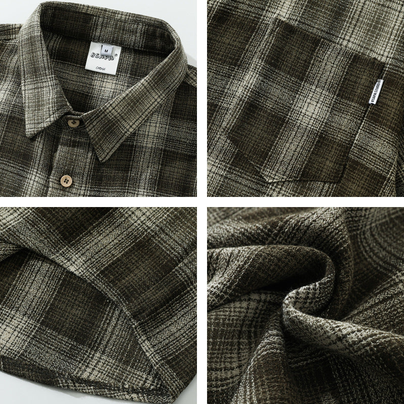 Gotmes-shop shirt Japanese Style Retro Artistic Youth Plaid Short Sleeve Shirt Men's and Women's Mori Cityboy Profile Half Sleeve Striped Shirt