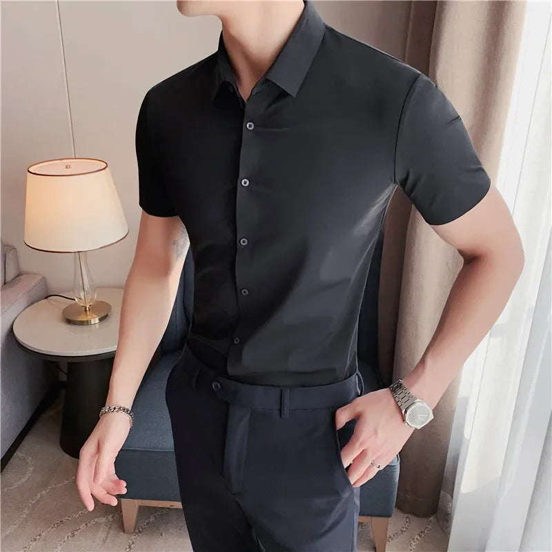 High elasticity Men Shirt Short sleeve Summer Anti-wrinkle Soft Thin Solid Casual Slim Fit Formal Dress Shirt Men Clothing
