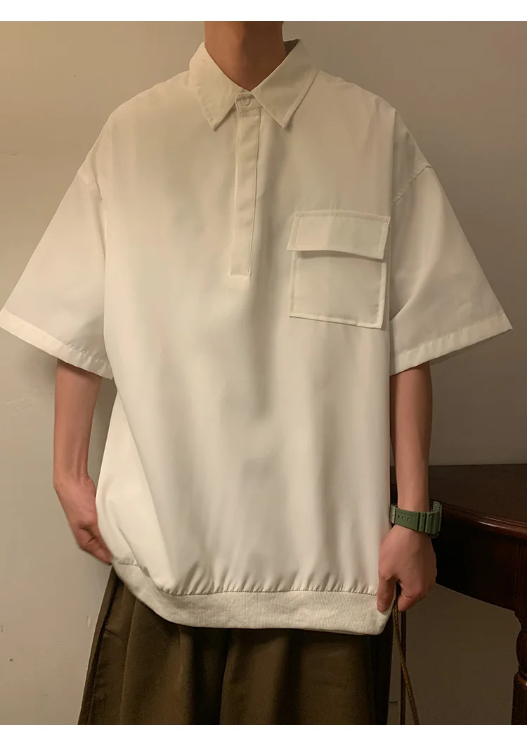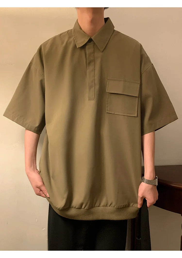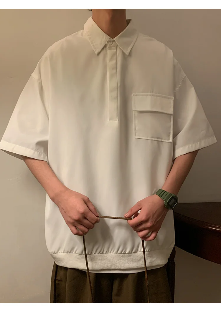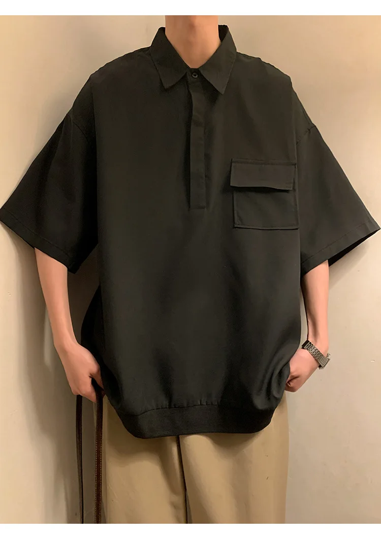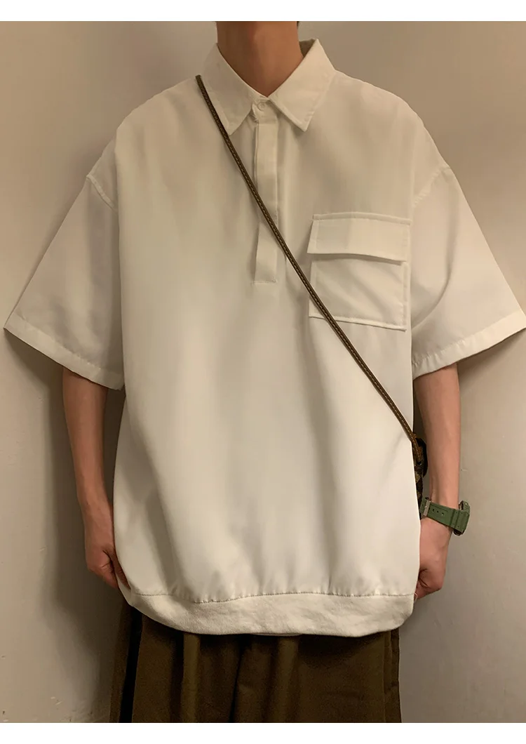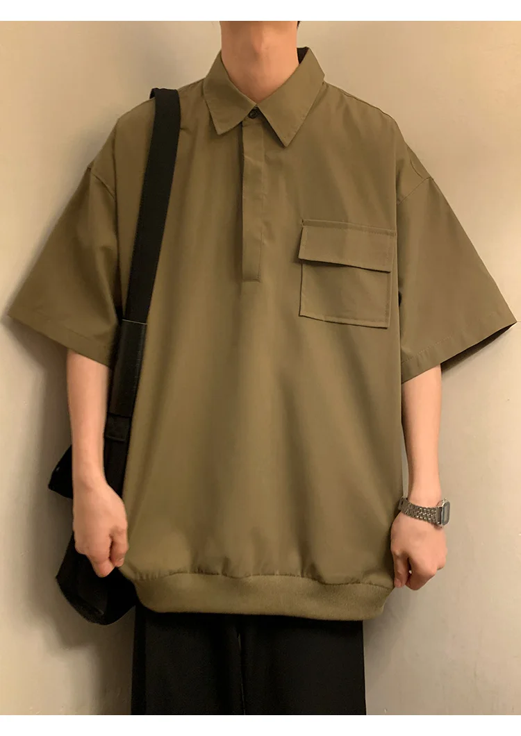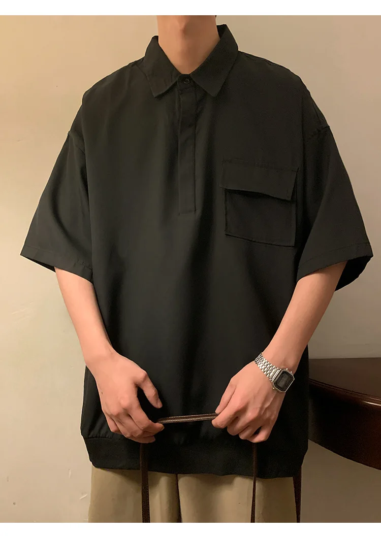 Korean Style Mens Cargo Shirt Men Casual Shirt Solid Short Sleeve Shirts Black Men's Fashion Brand Summer Man Blouse Male Top
