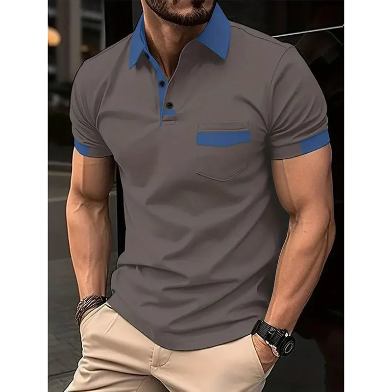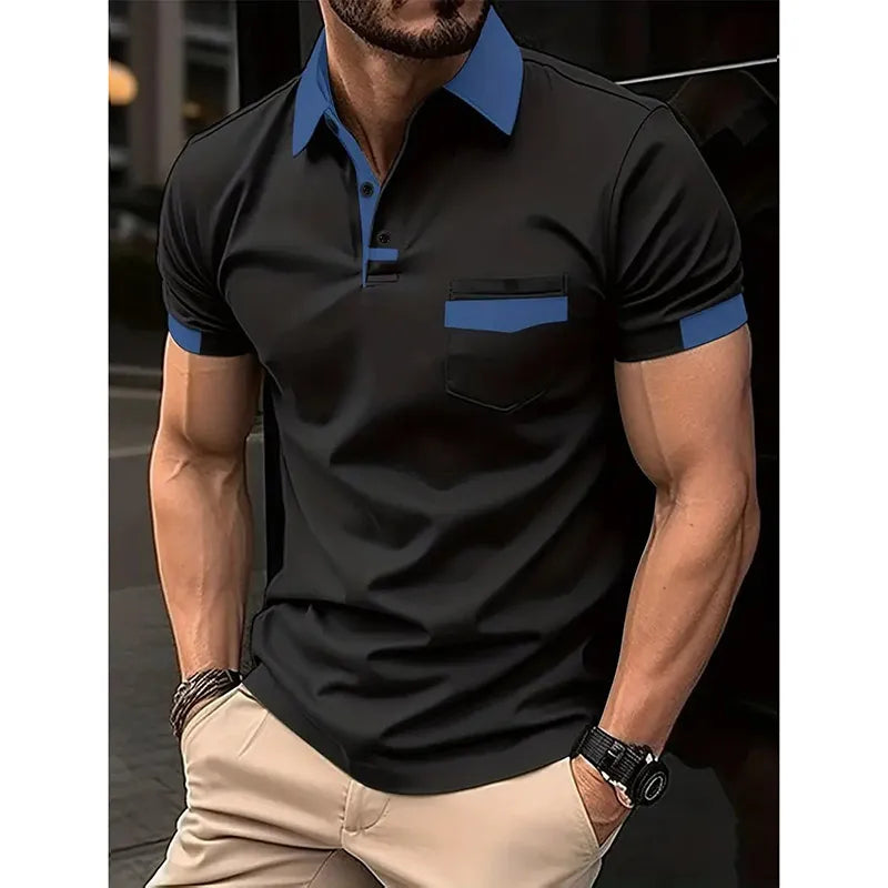 KPOP Fashion Style Harajuku Slim Fit Ropa Hombre Loose Casual All Match Solid Korean Style Patchwork Short Sleeve POLO Shirt