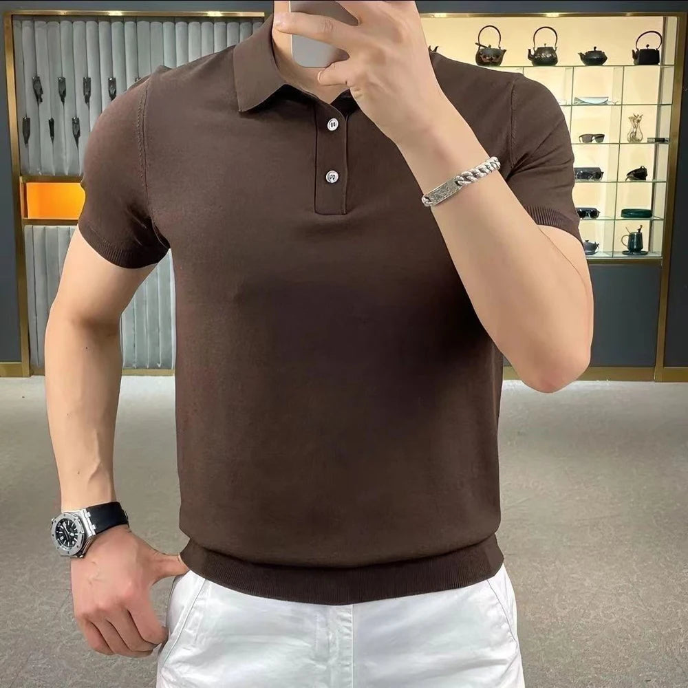 Summer Men Fashion Polo Shirts Short Sleeve Turn-down Collar Solid Casual Polos Knit Clothing Male Tops Pullover Streetwear
