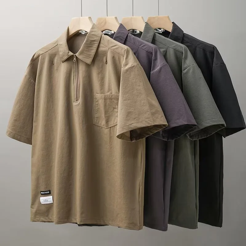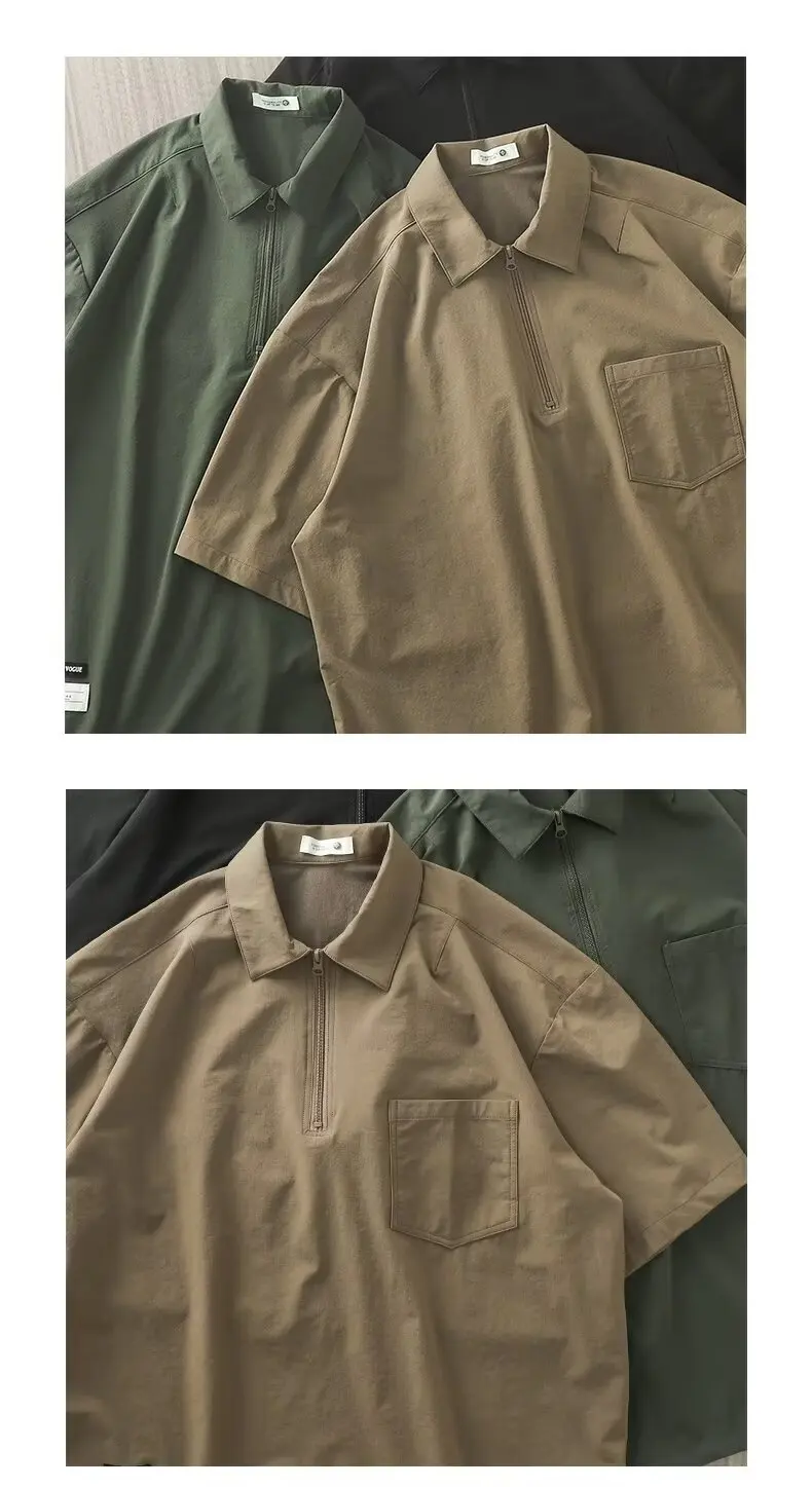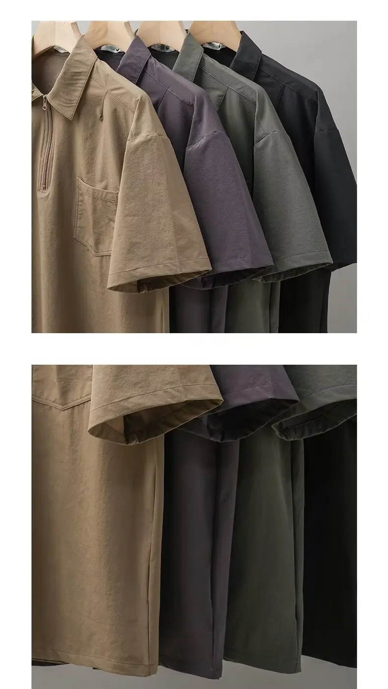 Summer Men's Short Sleeve T-shirt With Cargo Pocket Casual Cotton Tops Y2K Streetwear Oversized Tee Shirts Men Clothing 5XL