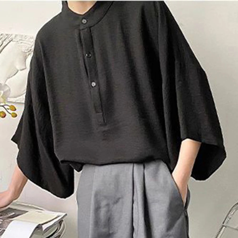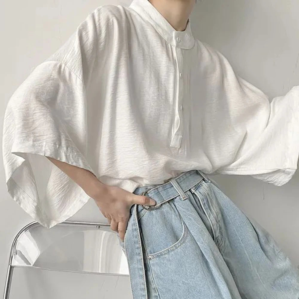 Summer Oversize Shirt Men's Fashion Dolman Sleeves Tops Casual Shirts Streetwear Korean Loose Short Sleeve Tee Shirts Pullover