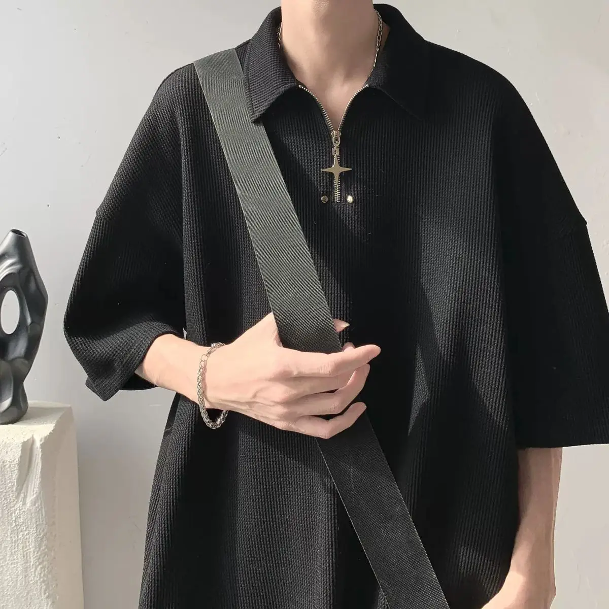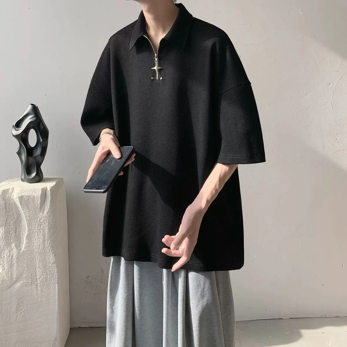 Trend Zipper Patchwork Plus Size Polo Shirts Men's Summer Short Sleeve Solid Loose Street Casual Tops Fashion Korean Men Clothes