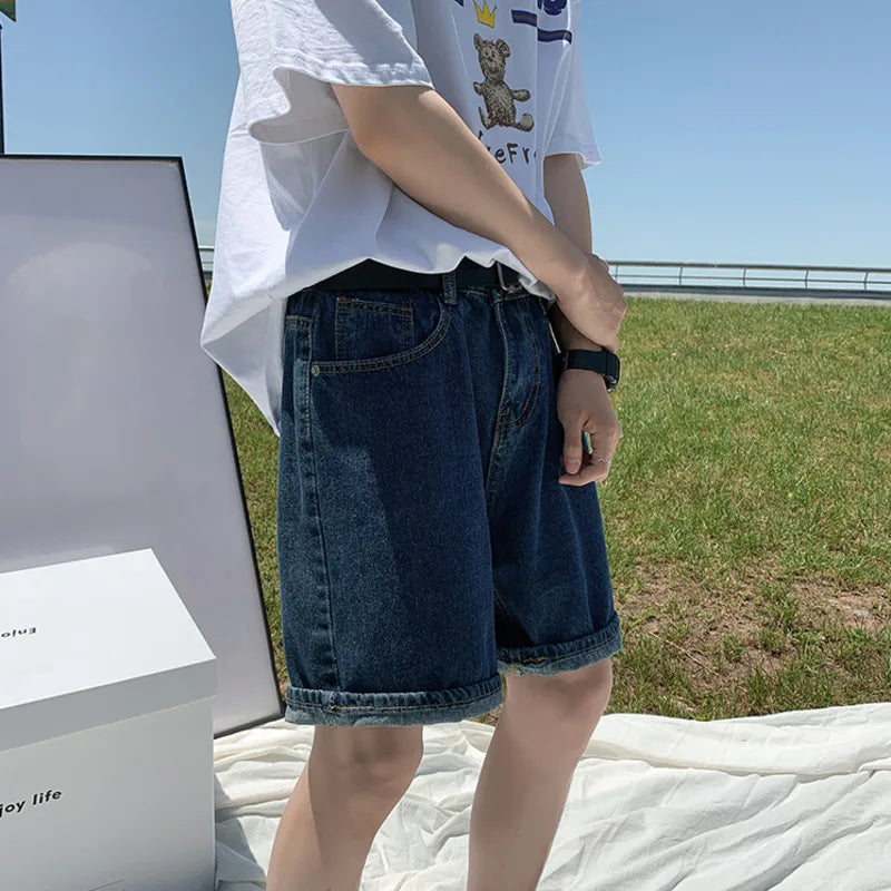 Summer Blue Denim Shorts Men Fashion Casual Straight Denim Shorts Men Streetwear Loose Hip Hop Retro Jeans Shorts M-2XL
