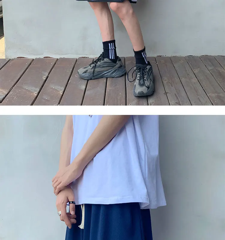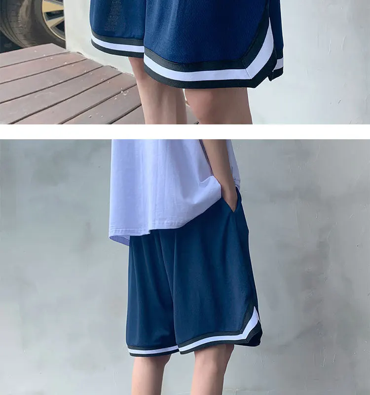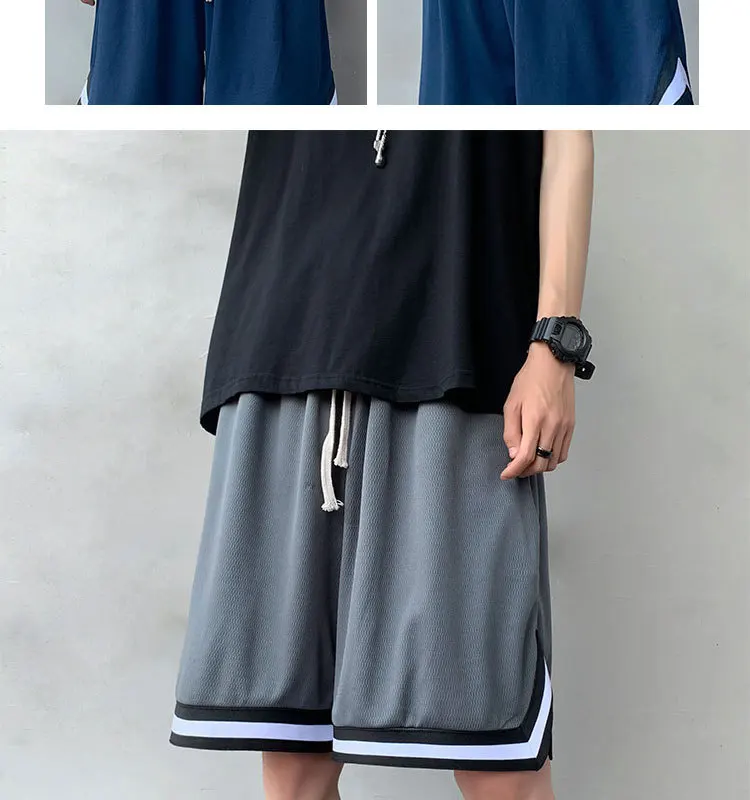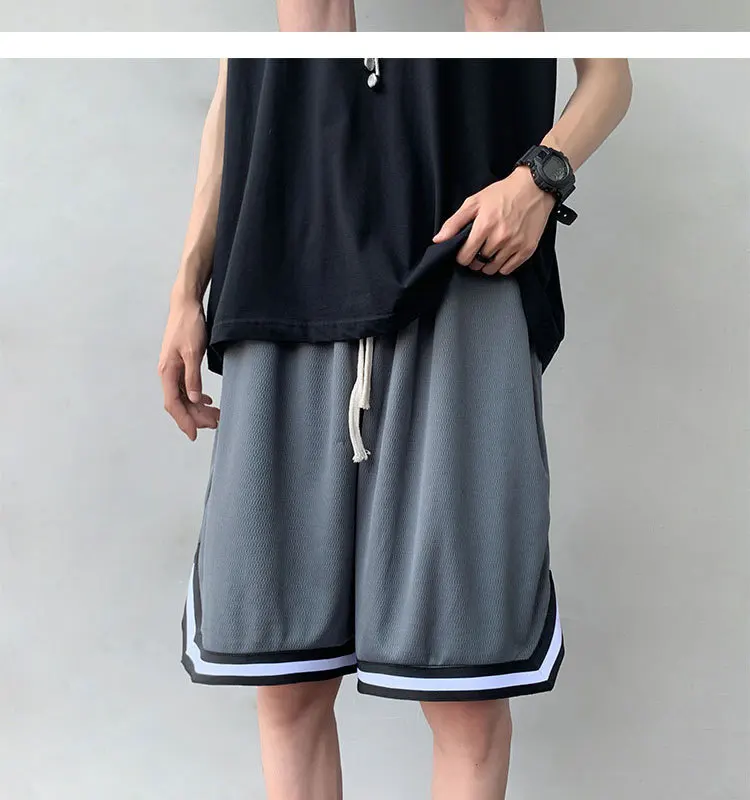 Board Shorts Men Summer Loose Straight Joggers Knee-length Casual Striped Design All-match Daily Cool Thin Japanese Male Basic
