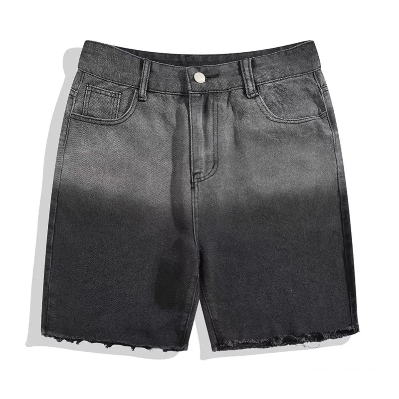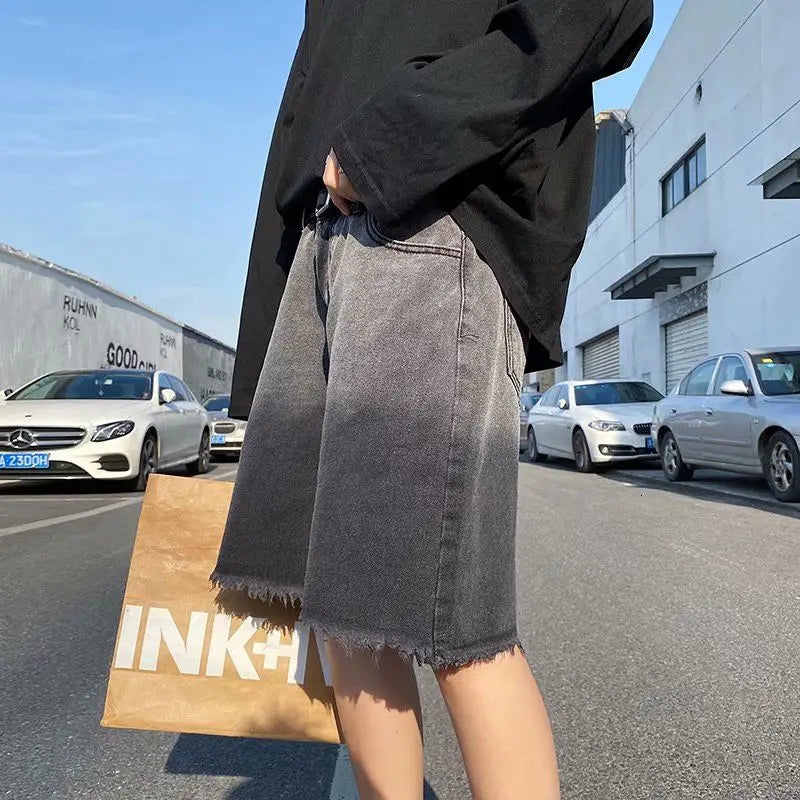 Summer Gradient Denim Shorts Men's Fashion Retro Denim Shorts Mens Streetwear Korean Loose Hip-hop Straight Denim Shorts Men