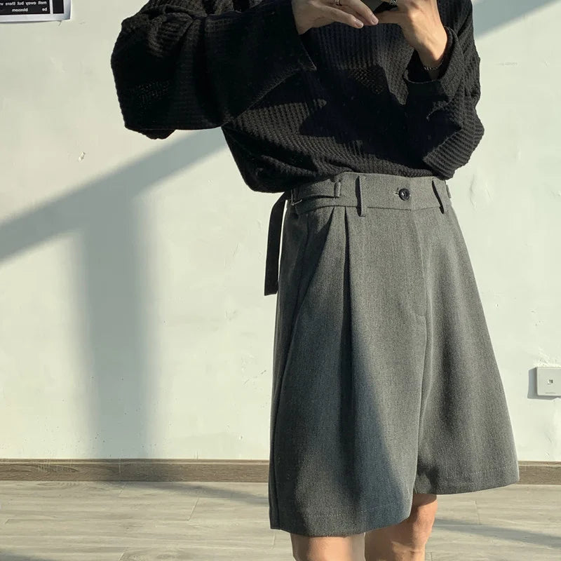 Summer Grey/Black Suit Shorts Men Fashion Society Mens Dress Shorts Korean Style Loose Straight Shorts Mens Casual Shorts M-XL